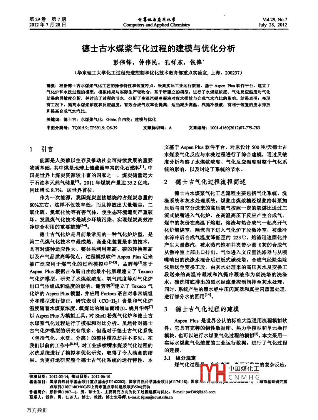 - 論文作者:彭偉鋒,鐘偉民,孔祥東,錢鋒