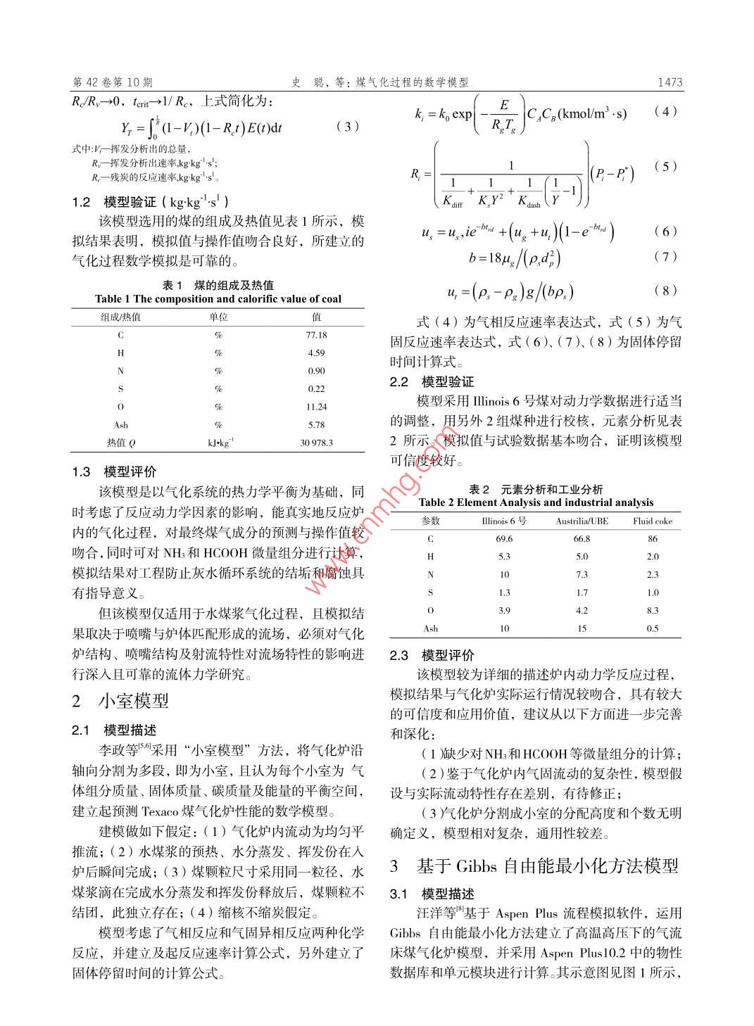煤氣化過程的數(shù)學模型