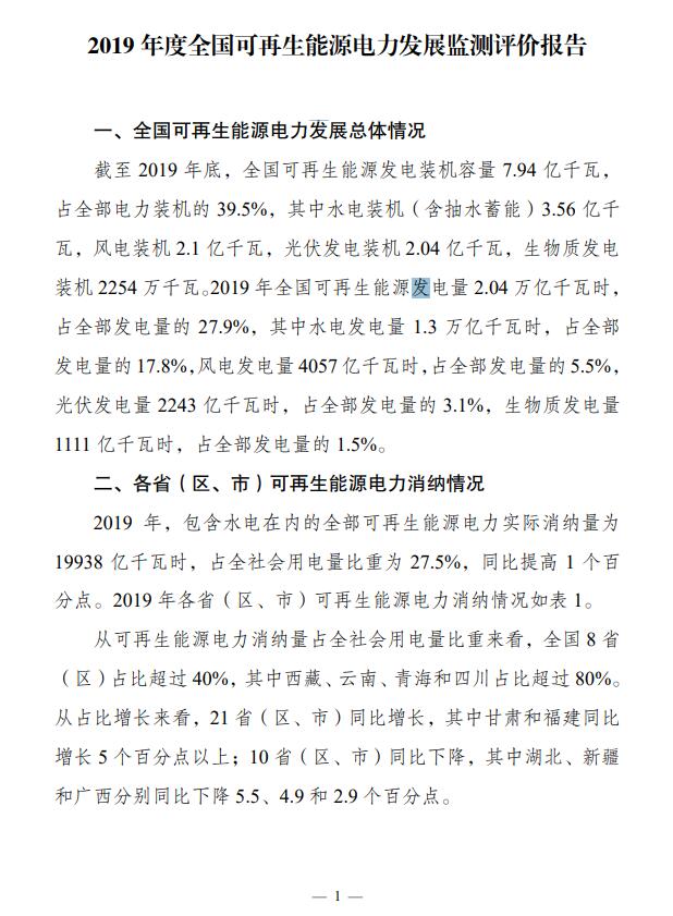 2019 年度全國(guó)可再生能源電力發(fā)展監(jiān)測(cè)評(píng)價(jià)報(bào)告