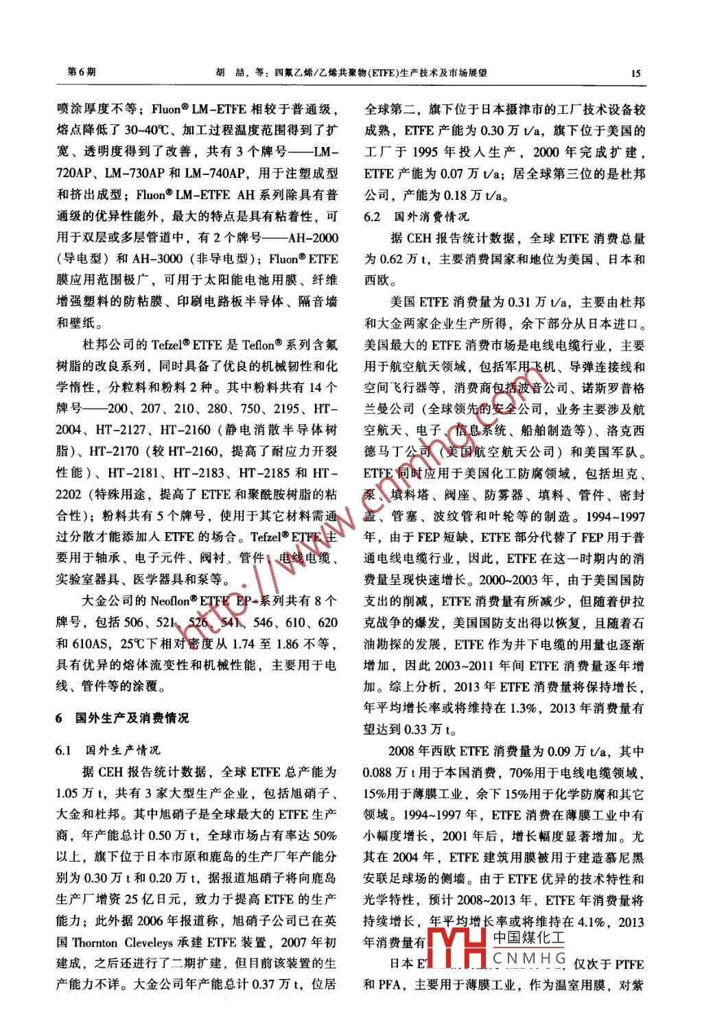 四氟乙烯/乙烯共聚物(ETFE)生產(chǎn)技術(shù)及市場展望