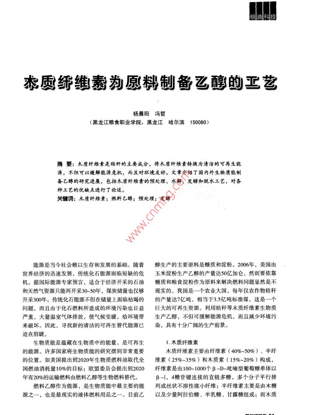木質(zhì)纖維素為原料制備乙醇的工藝