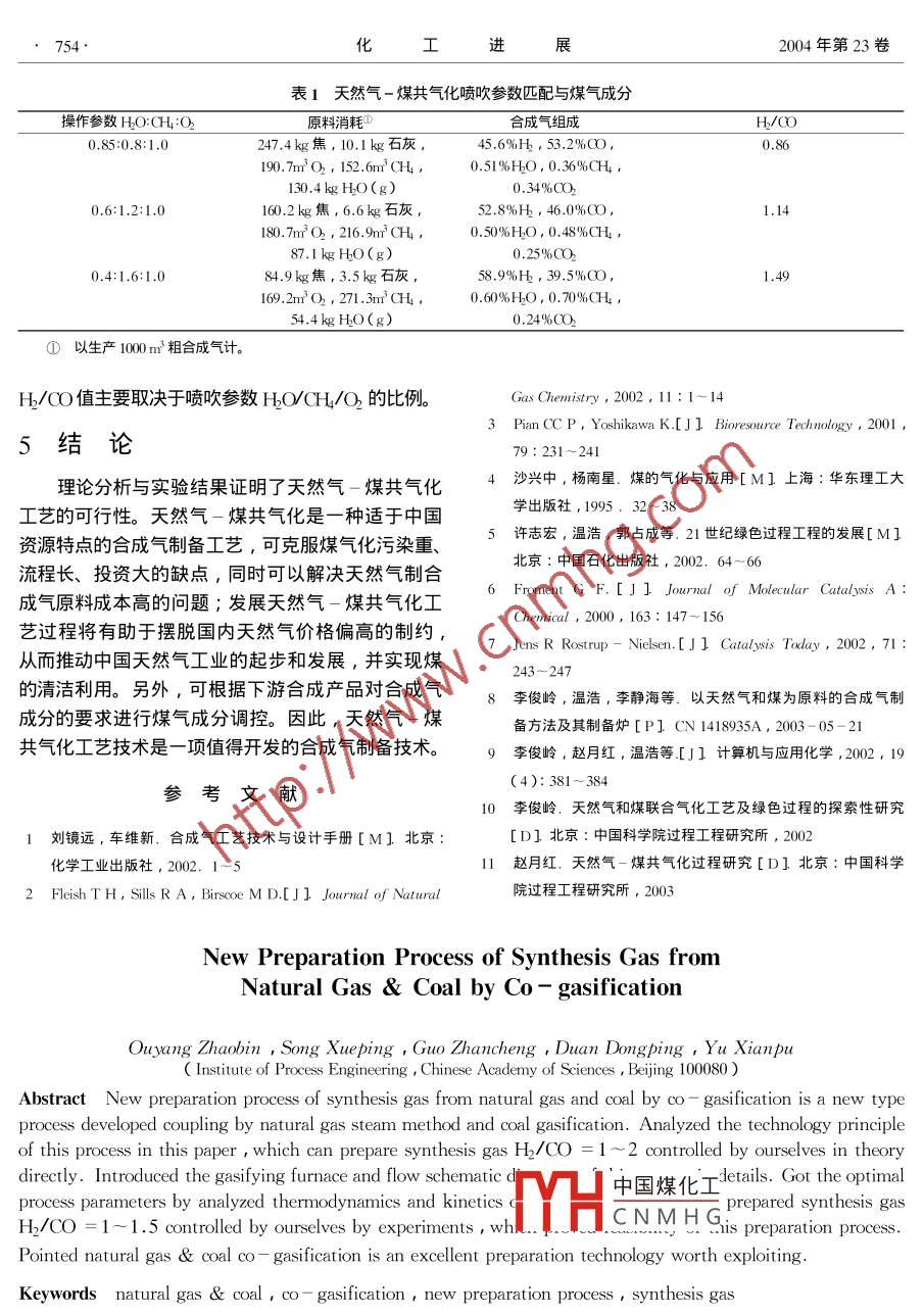 天然氣-煤共氣化制備合成氣新工藝