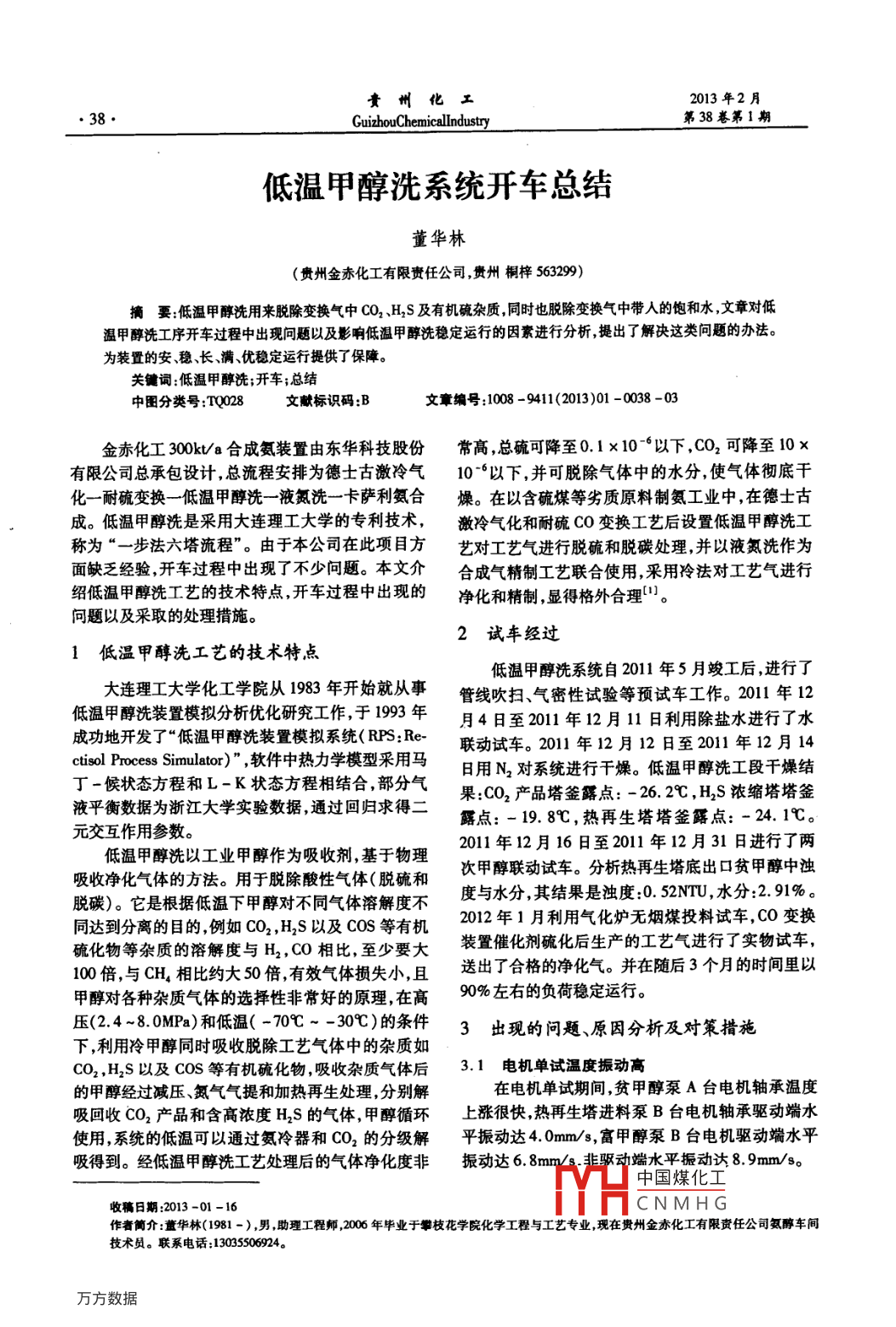 低溫甲醇洗系統(tǒng)開車總結(jié)