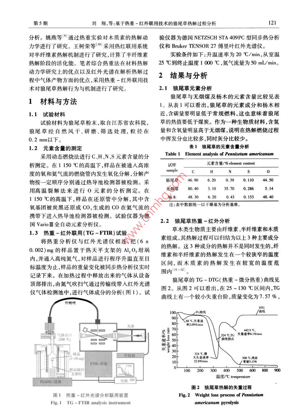 基于熱重-紅外聯用技術的狼尾草熱解過程分析