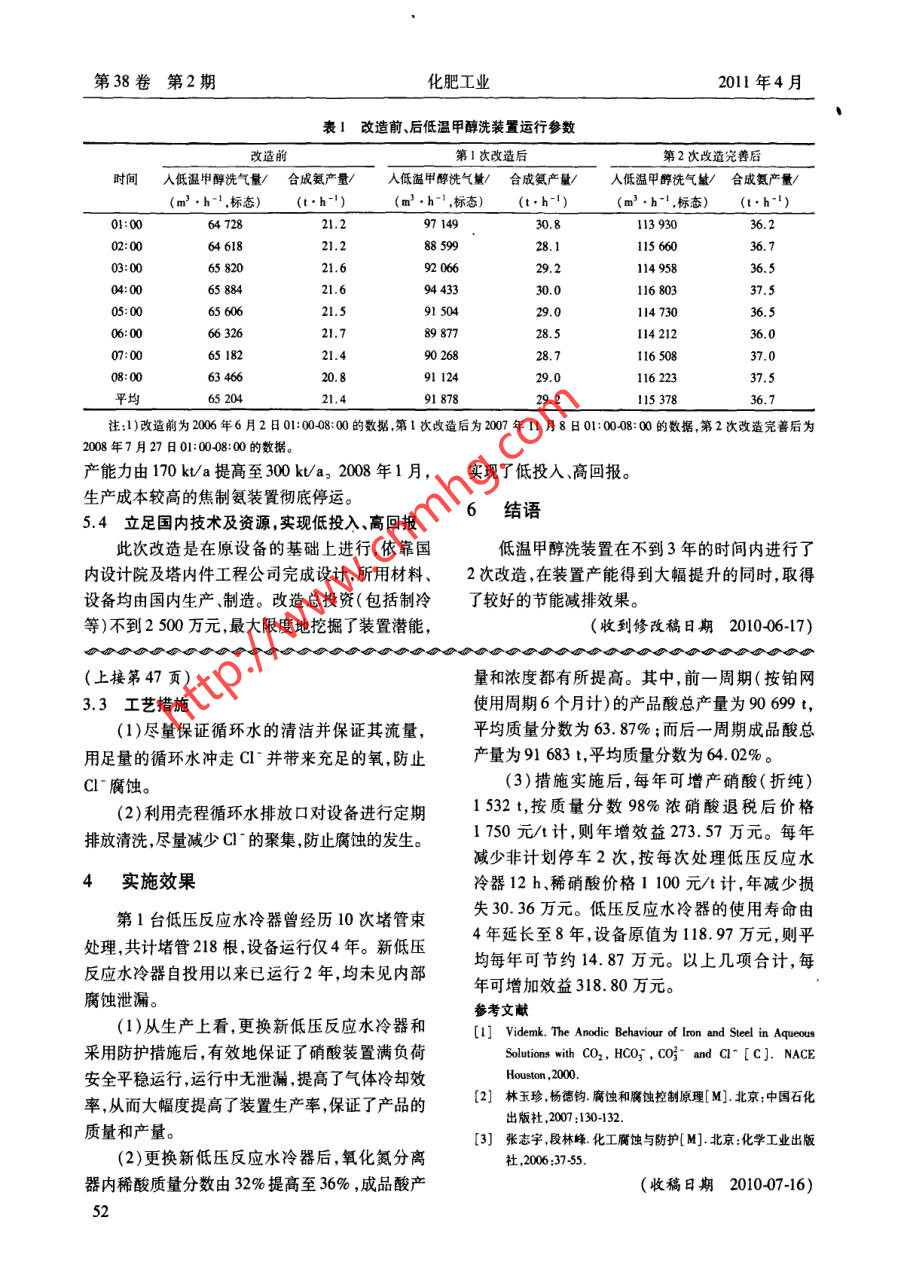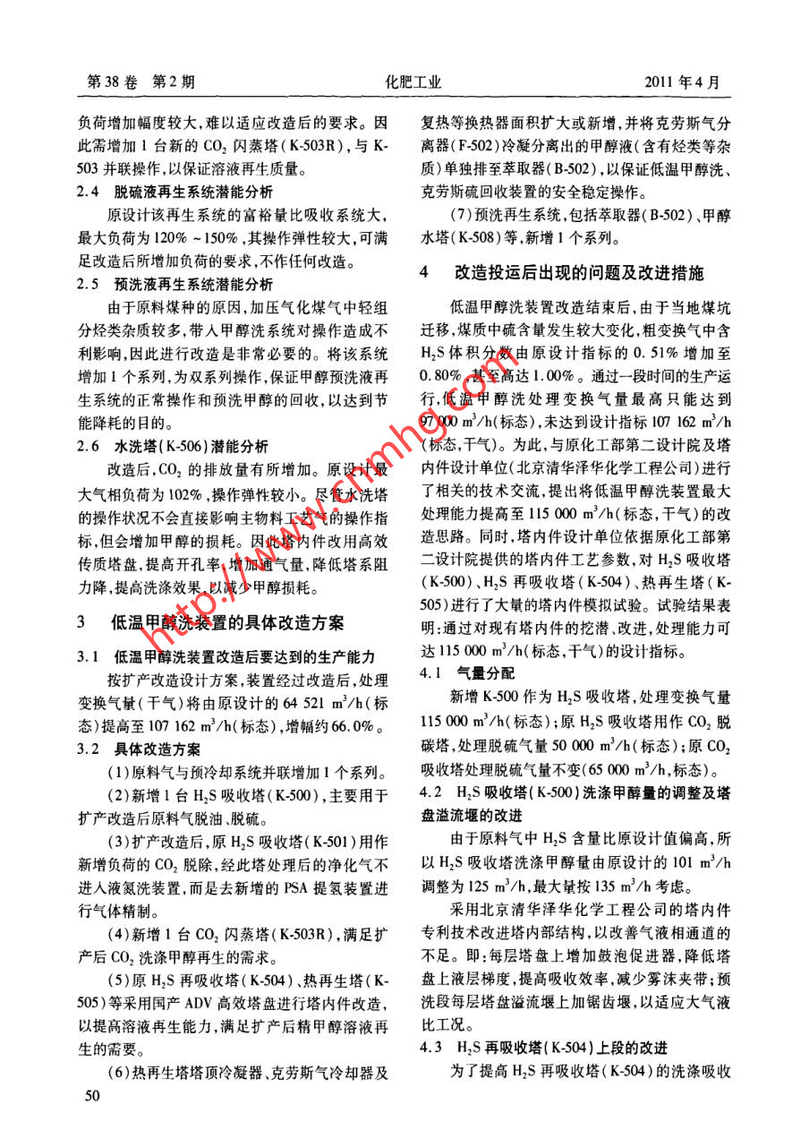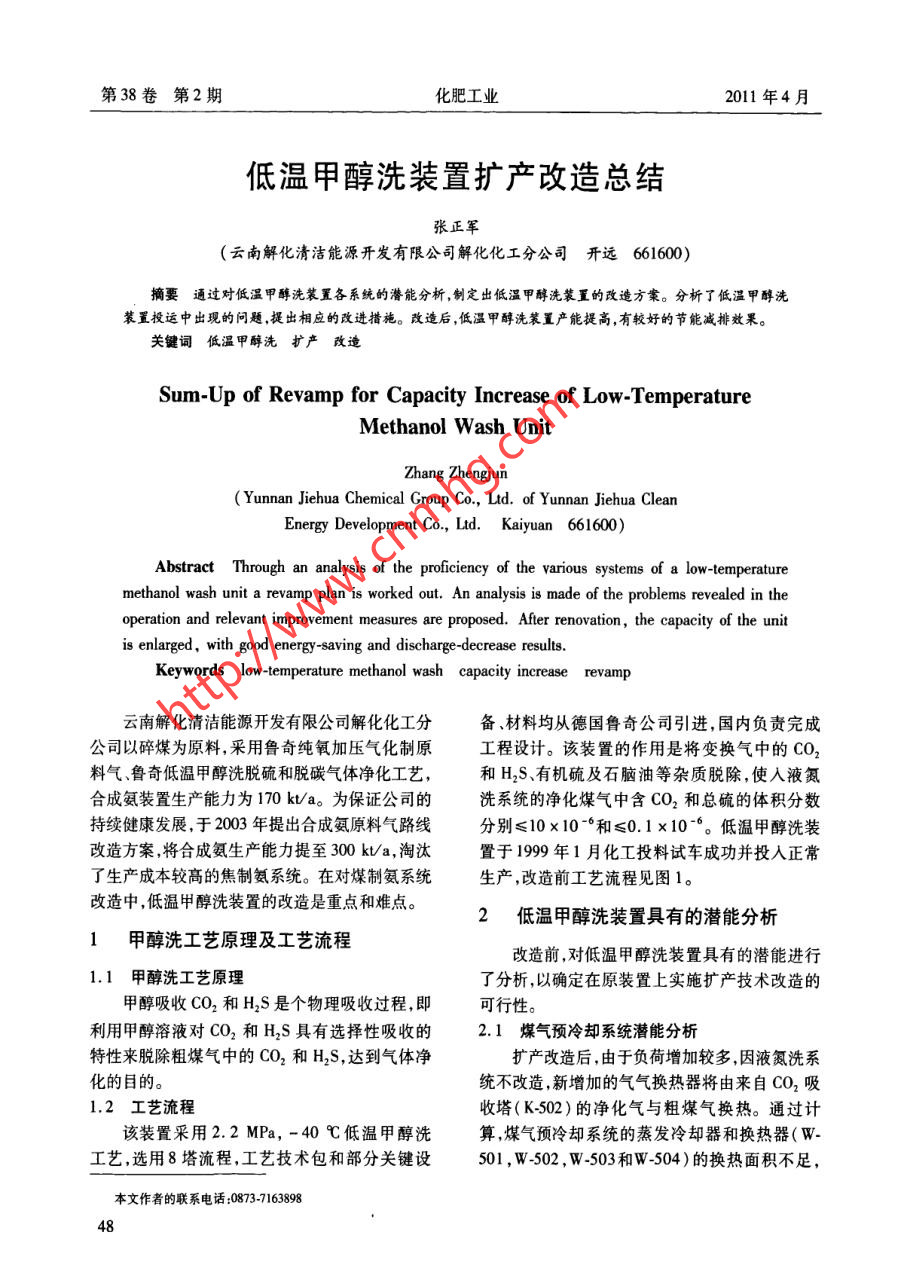 低溫甲醇洗裝置擴產(chǎn)改造總結(jié)