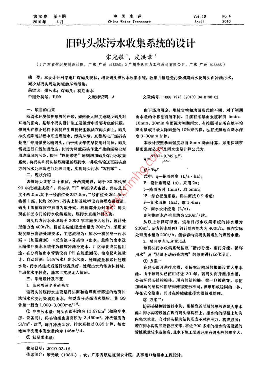 舊碼頭煤污水收集系統(tǒng)的設(shè)計(jì)