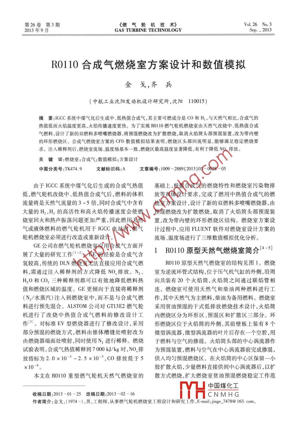 R0110合成氣燃燒室方案設(shè)計(jì)和數(shù)值模擬