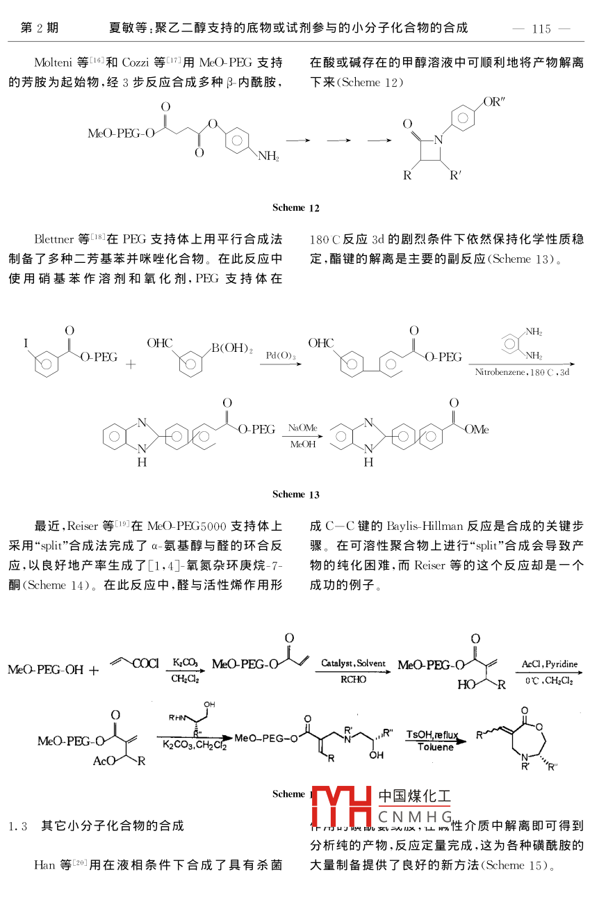 聚乙二醇支持的底物或試劑參與的小分子化合物的合成