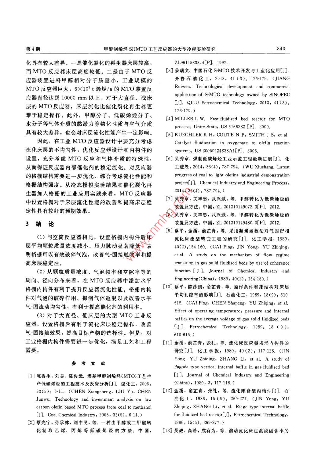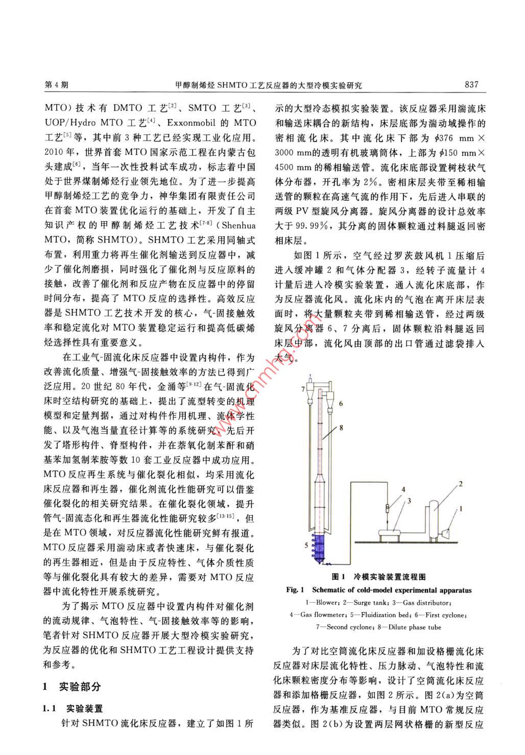 甲醇制烯烴SHMTO工藝反應器的大型冷模實驗研究