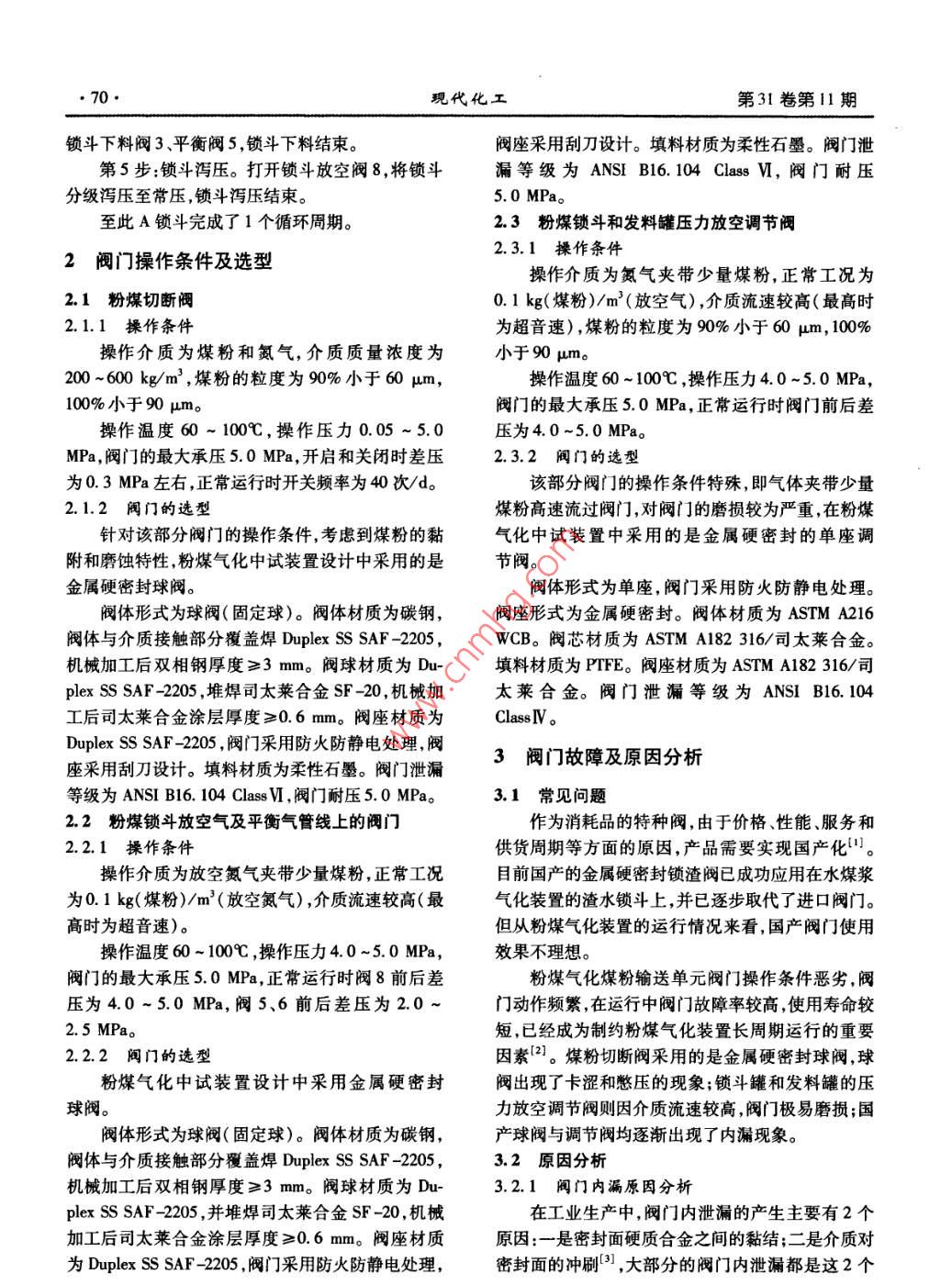 粉煤氣化粉煤輸送單元閥門應(yīng)用及改進(jìn)
