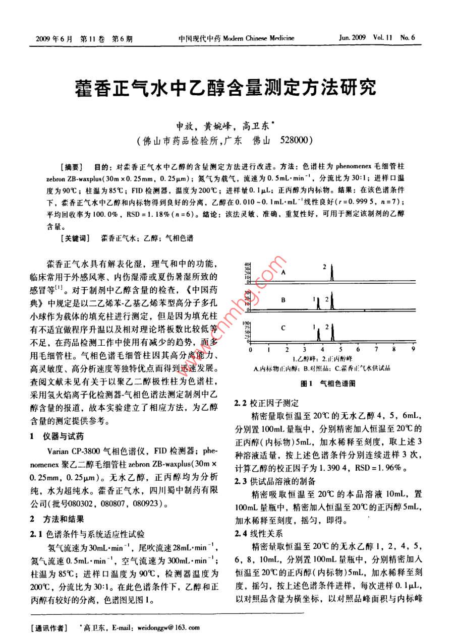 藿香正氣水中乙醇含量測(cè)定方法研究