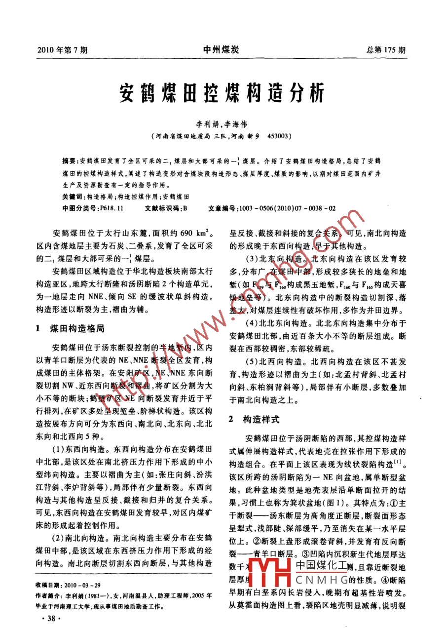 安鶴煤田控煤構造分析