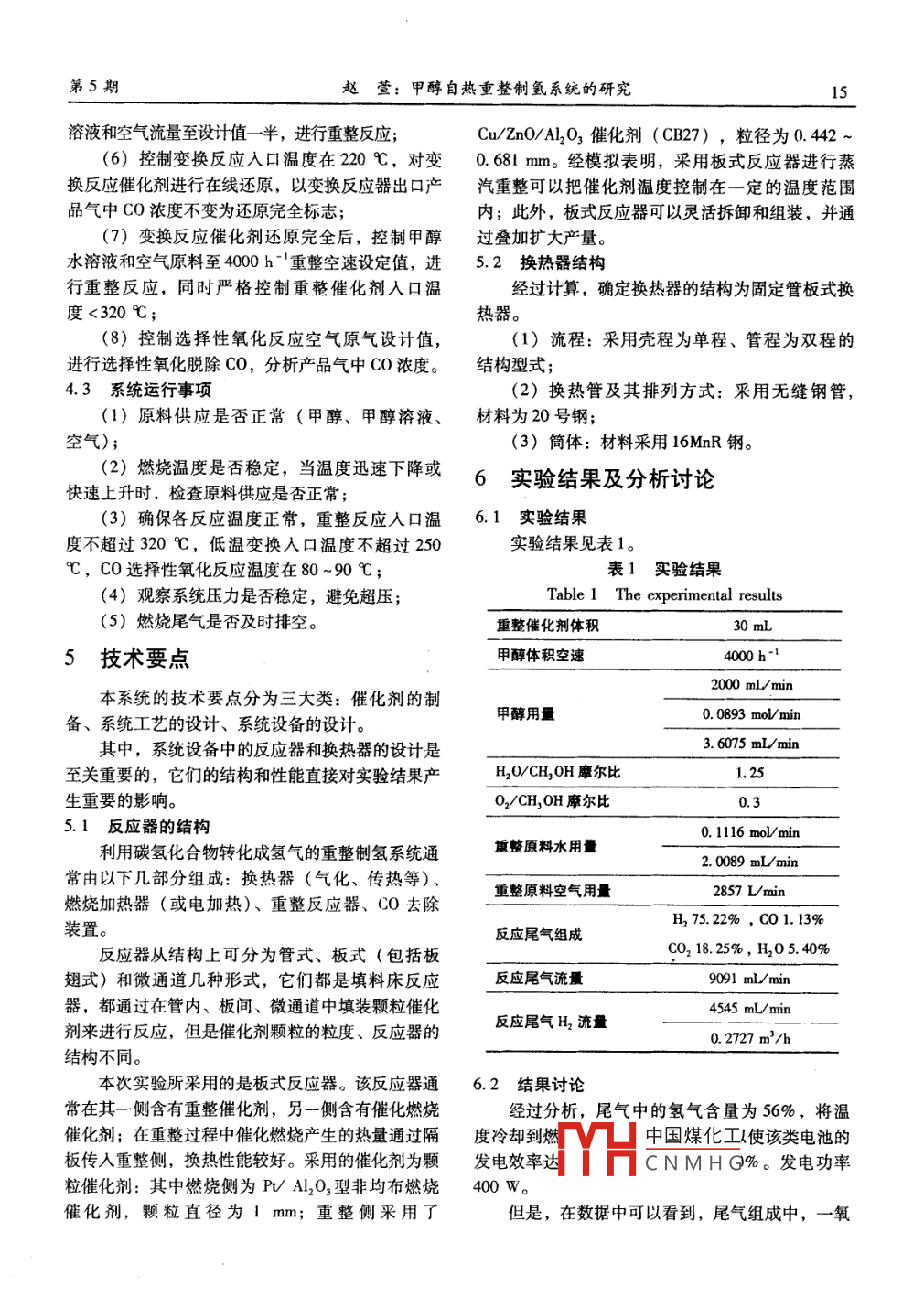 甲醇自熱重整制氫系統(tǒng)的研究