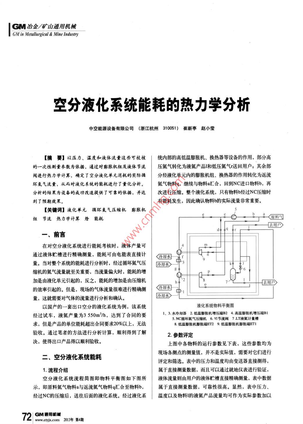 空分液化系統(tǒng)能耗的熱力學(xué)分析