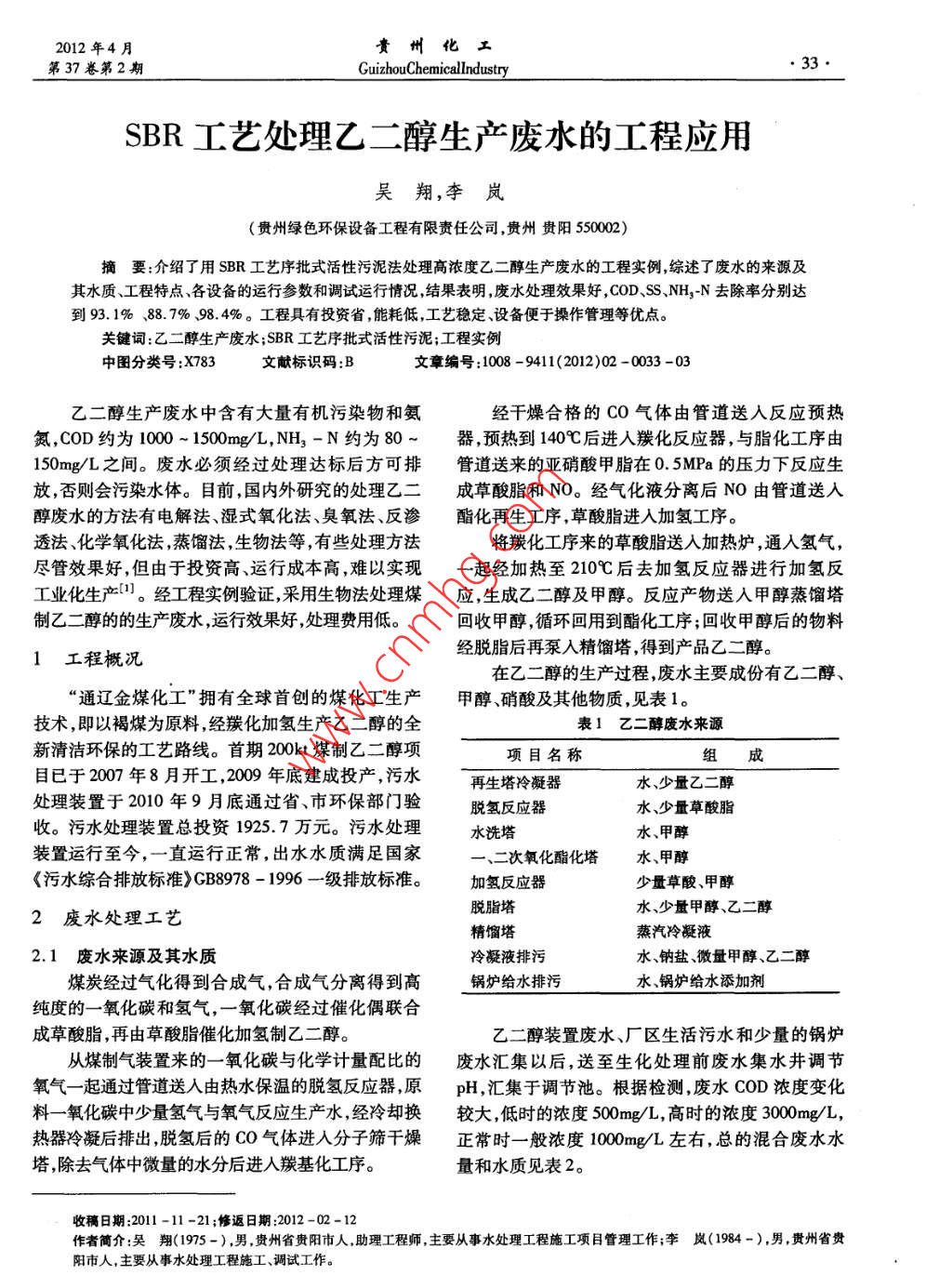 SBR工藝處理乙二醇生產(chǎn)廢水的工程應(yīng)用