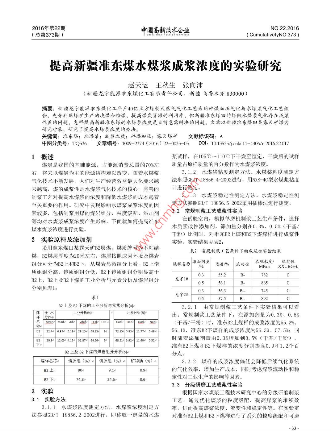 提高新疆準東煤水煤漿成漿濃度的實驗研究