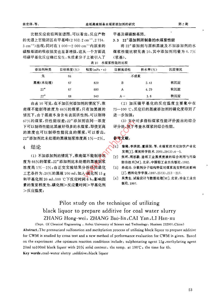 造紙黑液制備水煤漿添加劑的研究