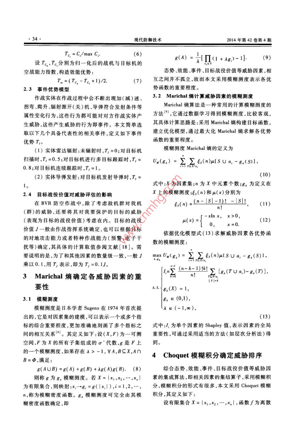 基于Marichal熵和Choquet模糊積分的BVR防空作戰(zhàn)TA研究