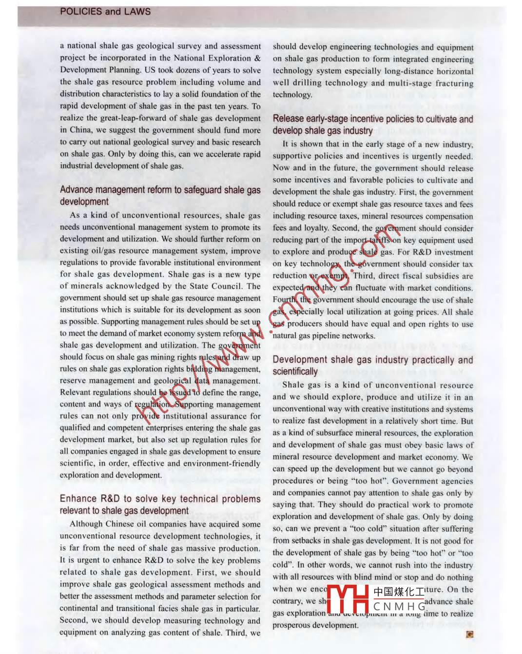 Thoughts on Policies to Promote the Development of Shale Gas Industry in China