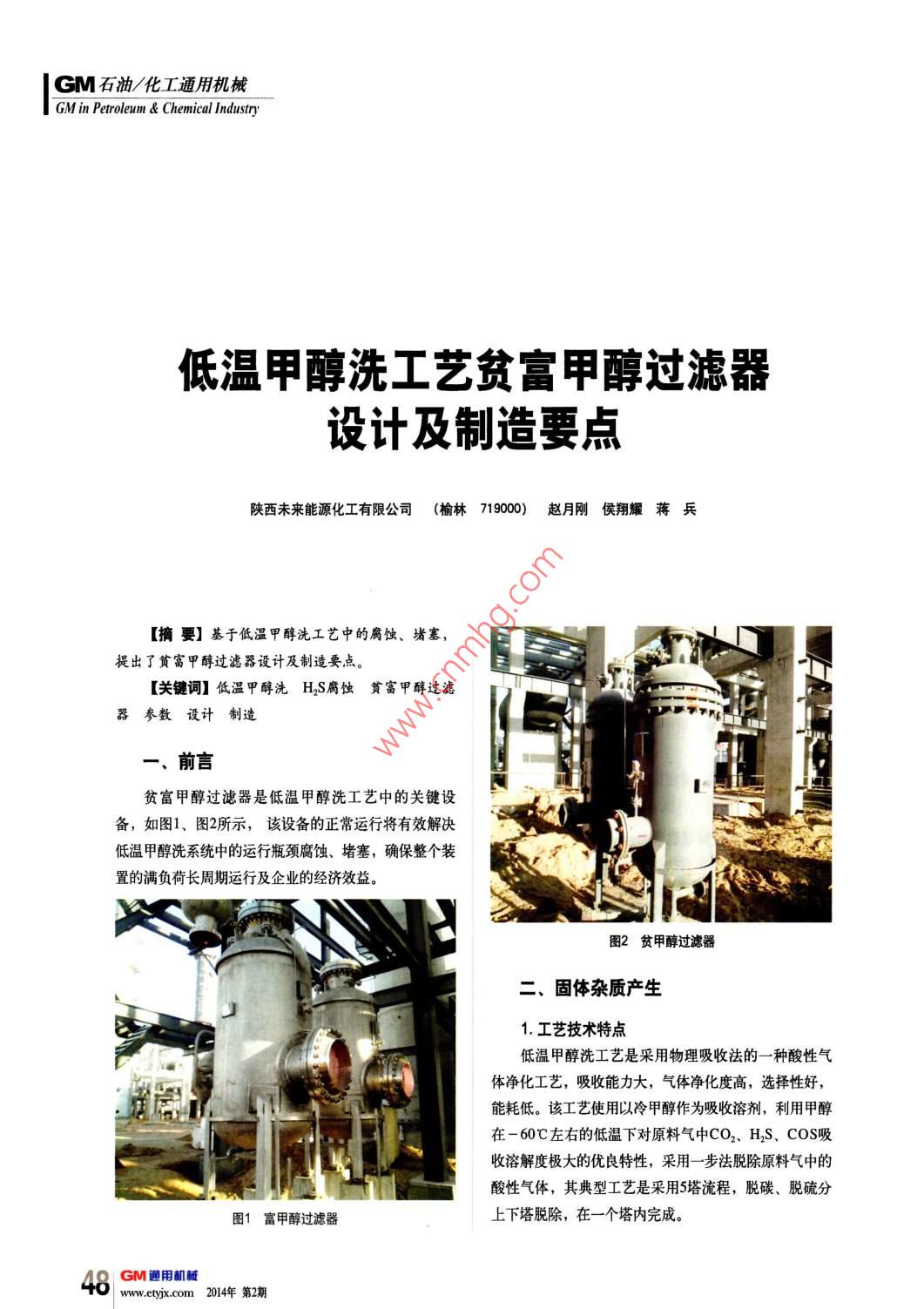 低溫甲醇洗工藝貧富甲醇過(guò)濾器設(shè)計(jì)及制造要點(diǎn)