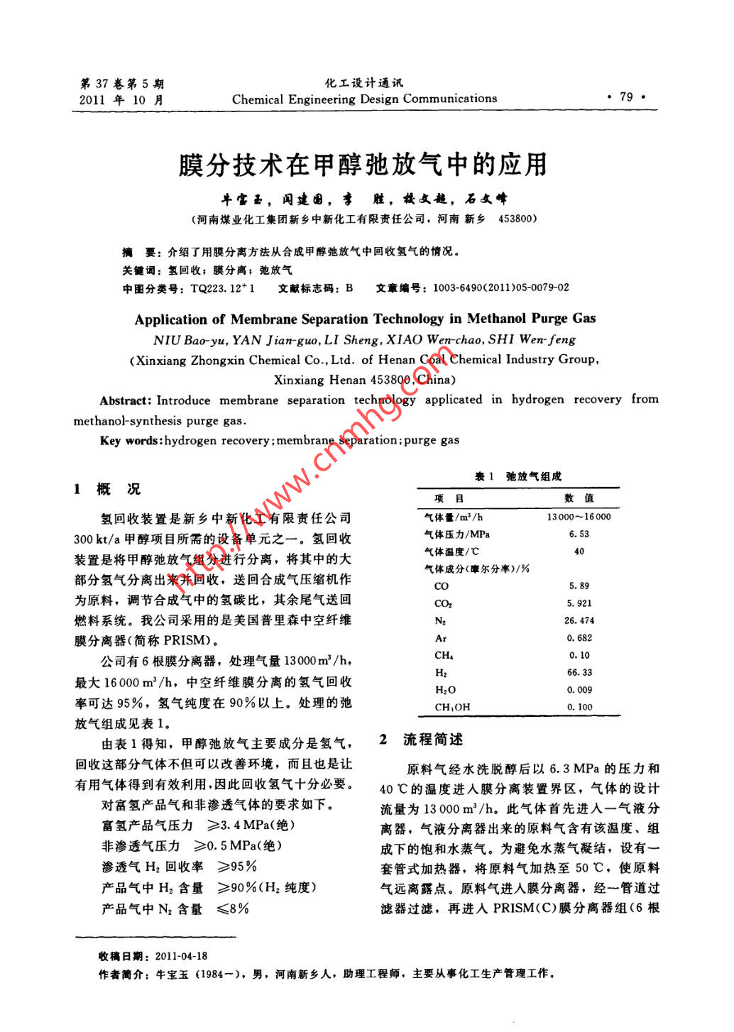 膜分技術在甲醇弛放氣中的應用