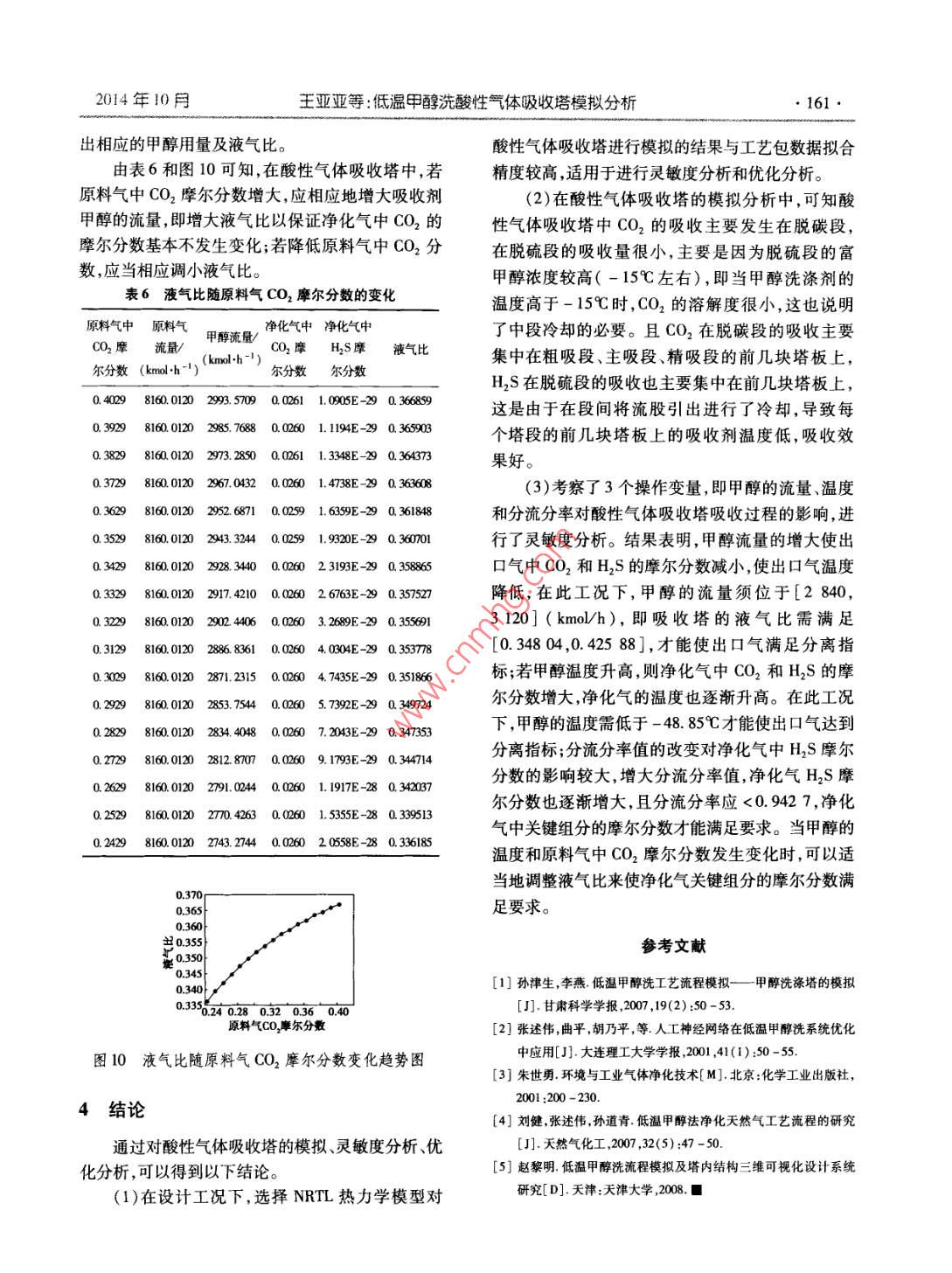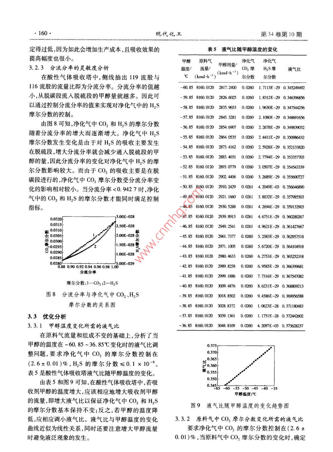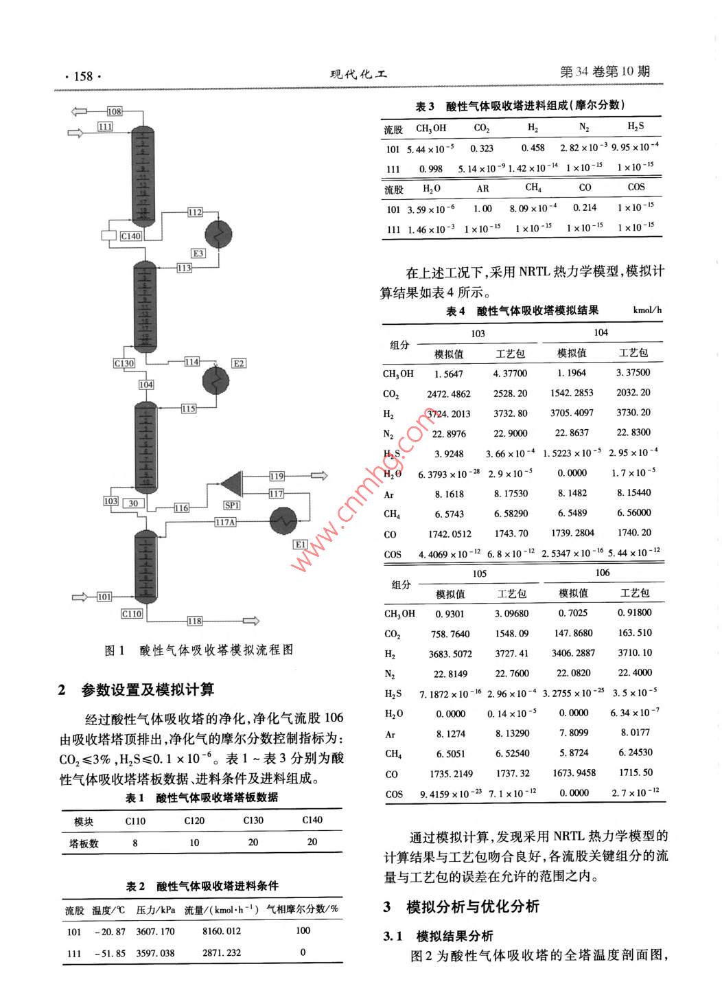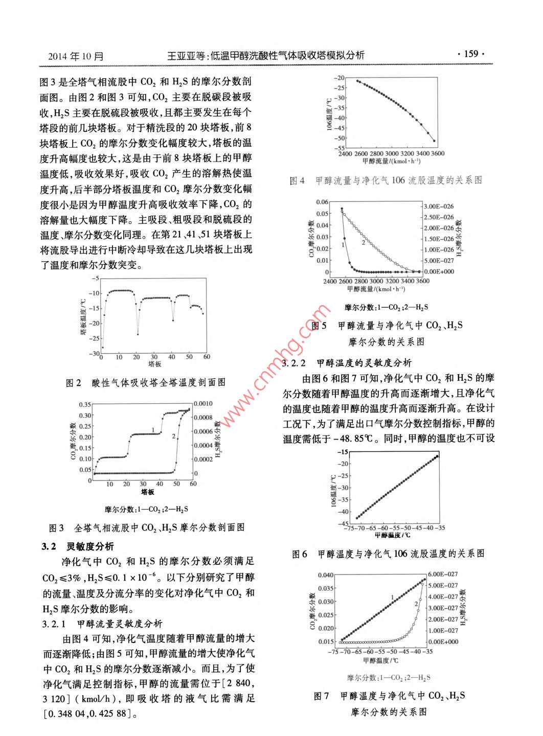 低溫甲醇洗酸性氣體吸收塔模擬分析