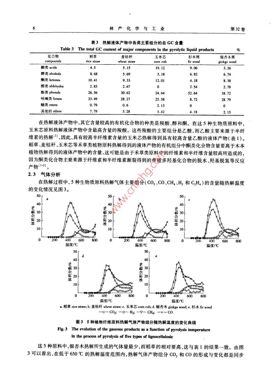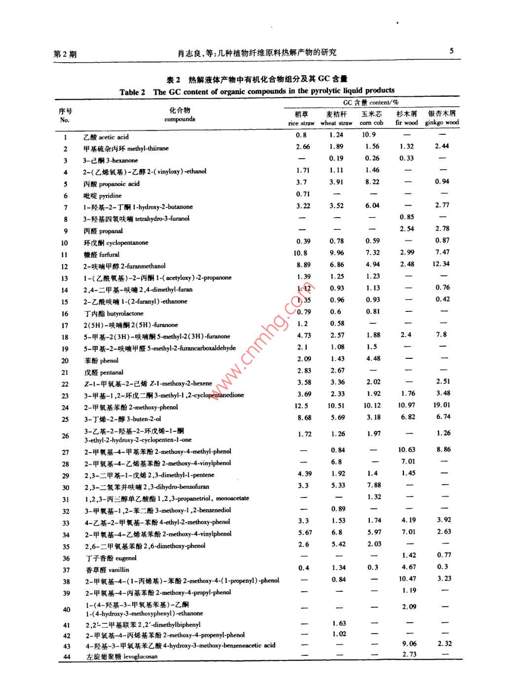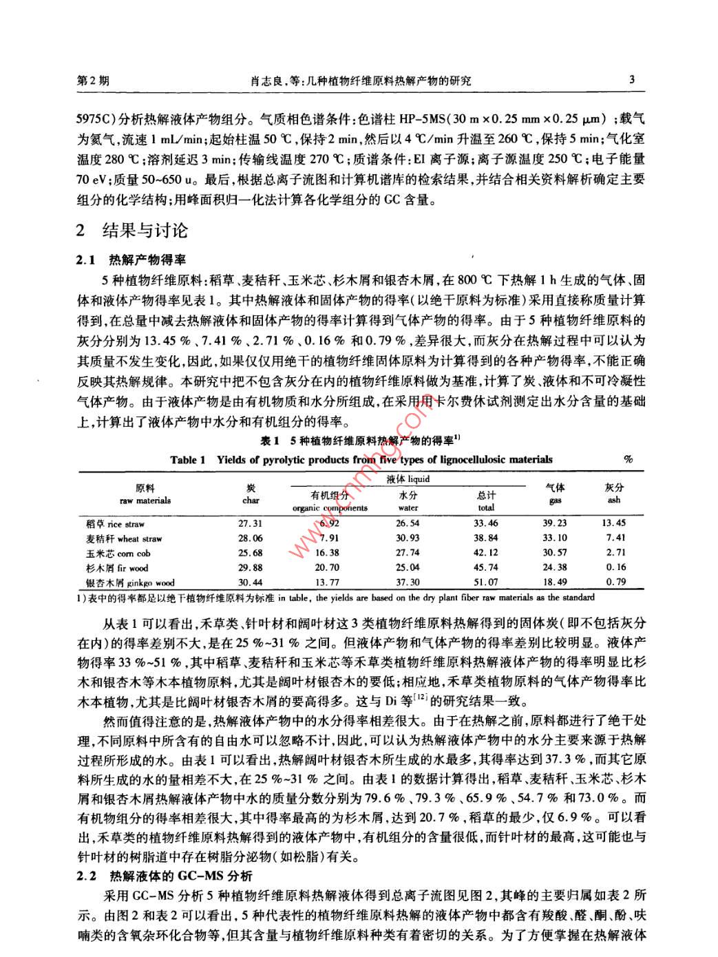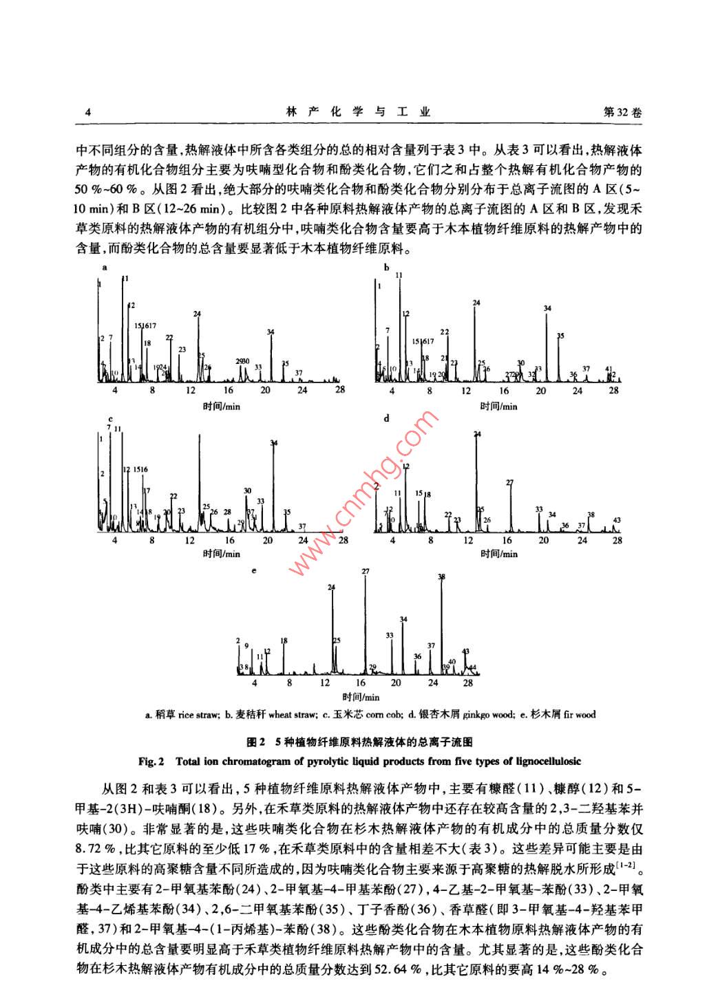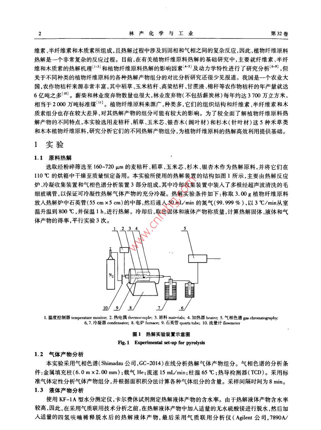 幾種植物纖維原料熱解產(chǎn)物的研究