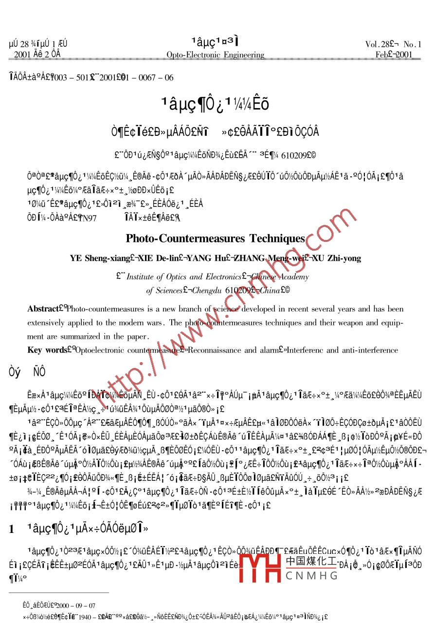 μU 28 %41μU 1EU1aμc1:3jVol.28E- No.12001 Ae20A: Opto-Electronic Engineering. FebE-2001_TA0Ata9A£r003 - 5018 2001£01 - 0067 - 061auμg10;14Eδ0qEcIefD>μAAOENT >CS0AAIT°iBi 0COA[0D10ξENS091 aug%44E6NBWεEu26A”3EIV4 6102092@@0≌Raμg90ε 1/4EChU% E回Ae . φ01EδA uAO>AADADENS iEE0U10 u0%6u0DuAμAE1a.90|0Ai&q01aμg10i 1/4Eo%9EaiaE+x°+, /ooDxUEoi&10140 °E£xaμg10;1E>0i2i. ae%&~ E》EAOe;1 ,EEA0D [%A-0Aa9AS9N97TATxteETAe£9Photo-Countermeasures TechniquesYE Sheng-xiangf XIE De-linE-YANG Hu& ZHANG Meng- weiE-XU Zhi-yongE" Institute of Optics and ElectronicsE-Chinese Academyof SciencesE-Chengdu 610209E nChinaE⑥AbstractfPhoto- countermeasures is a new branch of science developed in recent several years and has beenextensively applied to the modern wars. The photo- countermeasures techmiques and their weapon and equip-ment are summarized in the paper.Key wordsE9Optoelectronic countermeasure£>Reconnaissance and alarmE>Interferenc and anti- interference0y NOExexA1 aμ∞)/4E6° iDATC):/EoμAN印c012θA1a2" x+ T甲°AUu ipA1augT0;1 aE+x°+.J4°EVWψE6Eθ∈驅(qū)EEμAEUEμAμ/- c0122∈T≌EANG .+10%0EA%10upA00Oj%μa0@O> if1a2"ECO>00μc' A2"EGaEuAE0q09. B0U0>aAx TμA1ox+EμAEp<1 a i0D00eAx Ti00+EC0DCotoμAj21 a00EU惟i itEOO,°E10Aj@xOxEU_ EEAμEOAμa03FEi0tδECAuE●Ae uEEAμAV%a 1 a&f%BODAAE βj$)eToDO*Ajp¥E A/》> 2aeDADENSiE1 aμg910i 1V4E6jf-E+0;OEToEuZ2t2> Tμ0o1a∈EE -c01if11aμgM0;1μAx←0A0eμ0個(gè)>>1aμg10; 1023E1 aμgx00%if r0%uEAETY/2E1auq0;1 ECO>QOw0EADDTfAaEuOEECucx0q0;1Io1aFEx∩μANOEi i&CEAT iEEtu2EOA1 aμq90;1ZA01>E1μD -%quA1auc0i2iEe中國(guó)煤化工'BA:20FE1u1D9T4°YHCNMHGE0,。E02000-09- 07x+03BNW$WYEcTE° 1940 - 26AR"22 xasgal-.. >NE∈εNDX&jOtE→OEANuAU≥aE0τψ∈Aγw∈δW°1auc1o3iNDwi&681aug13jμU 28%4iμU 1EUV如1aTaE+μADSAO%uμ1 >oESAefEE . t業(yè)-6uA1aucEet。μA00Oy3E -C>Ox+0Aj&1.1 AuE μA>O1EAuEBE@Ae UuA%ATO0OU60U/0A6/264UE10AE0E SA - 79i a-Aoσμ/4μ20U0。o1aOAAO>+AaAA>u 24 y402_zoAA3003A00 0>→&u<μu+AA%uE10Agi iaOuEtl6oA-UAuTEgAeAE if1972 AeSAA%u0U 2h AU1q -A14o10Euμ4o0"μ 20A29'">U 17 xuUCAA°εEμ0%4u0AN1A> riO;1 EtEAAWGOUO%zAT ,”°2μc3s iqTAV4。@AM1 1a0"μ~右”1PO> AuODi;AA3400/ATE%2OA 210 ATEO"0" μ 23AAUAuOAiteO>. ,0f9oE10AV= 1 aoOEμ40°μ 2HY6D13/VFEuA 2721 ATODEAuODAi+eμAOD 1675 AMif1973 A@/W%GQOE1OEOOEAEOODOBOEu4”11εEμ/qu~fzh AUO>+>U00E0U$θOE+>U°2W011εE 250 AVEDBAaNCi1 iE 650 AWSfo∞OE°fDBAY -%60AEOOE .' i1j∈μ%μu°》→Ui1;E 550 A%4 i0E ADgδ%u -CEa 58 AMμucE0OEμψ°DjA& i沽0μ∞μ/μ 42>+>∪°2%°i;E 152 A%SE1 |AE T90% j£1973 Ae 4 OAOOEuADOU 18 iAUO和吖12EBjri ia0eμlquNAu >+Aa°zi BO%T->U 286y40j£1982 Ae0OE+AaDBAuNC .E>帕29 y4U2x0% iPO> EδES if 1982 AeAloOAOhOuODEAA1uμAj°2>EAAMj&Oj0μ4μ° >+AaμE9°UODAOEoμj°Ax. ni@25j2900%B>+>j2wAE@Ae uerial%Ou°ijEE+ 10%0ou ,uEC。 :1 uTE%zo1aμc TaE+μAEONes;SAA1GE10A1a1 aOEμ%0°μ~0%AA1GE10AX%usTaE=EyAiμA 30% fp<+> Y>UμA°f n"T6AuAite0BOD 90% EC/4a1a0"μ Eue;f1991 AeOj°AeE。i9i iaO .uμxiOiOμN(yùn)μ° >+AaCAA-εE 25 40-E>G20A161≌ExμA9a1 i2;90E10A-' i1 iεI/μ° 2610AA- εEμA3ECSA%1 iExe3EuA_01u3a3C3E1eO>N-T1ujEAAGE1j°EeC0OB iE> -CEaε0μO(píng)Uμ/μ° >≈0D0AμAO》xiE@A! -cμQO%L9o∈Ea°6A1O》VyψEeC0OBiE>G00 -cEaO>AOE1A-A- itOμ0U/μu £%a10A1uV4μT 0O01p/4uEu>+ "@uAμ ix0D .EhoE¥$E91μxY>UAE -chμcσδ4$∈θax1ECμ+∈+A00e0> Eτμj和AT⑥9”jfxWijf 1998 AeEATARAE%UTOCE/@° liA> iAA--0EN1261tt0%i:0T@uAC° 12 i i9 -AuA 12 AT/Ga1aO0Fμ40~μ 2%60D 4 A》+0DAitei&AA1ψ°647 jADCETx0D9j iaEEI6OCEOU 1971 - 1974 AlW4a£θo i/62aμ%E0A膽;6D1uj~1uμA 1000 a個(gè)μ4μ~ -C .Eaj£1975 Ae 11 0AE60A@0A%>U/%a 1aiaF+ hAA1u -Eμ0T: 2@AONGET i0%aEOEOA≌uW4μ -φEa3jμAOu34~ 1ADC 0.i°1 if$981 Ae 3 OAEOOψ°O∩O∞EEEOBjADCETx°00_ BAU%a1 aTaE=E61 AA100》iATADCuA00Taj@i ia9fugx0Eet.ieE=Aq°i0;在%-i1 ;εμWqμ~9N≥%y∪%μ° f+996 Ae2 0A003E1 |p0>+AaANAiOE BMi2A~ MST13@IGπE >W4yu jf1997 Ae 10 0AAA13E1 |0/6oDDO》 個(gè)%1a-個(gè)ADCE0Ne£4999 Ae9i 2000 AeAA1 u/%oDDAEIa”T0%GoμAμ A1/20EONeseyEOAEEAVG,,+ 1UEEAημAN10010xφjf1aμg90i ! TaE+x°+ ECO00DADjuATaAE+x°+,26CE60ψ° iajEE6EVi%≤μA10 u> 1E/%o TaE=E4uAUIaDeC6Aε0∈EδWaOojE%Y+* μAE和A-1 u%40~0 1982 Aeμhk 1991 AeEAeYa 1 aug90;1 x°士。-N0A18 27 0UAA0@EAeμY0o1520% EAA1uμcx0O/EONe -NOAOD0A001 augT0;1 -1yAxeμA 1976 AeTβ 16% ft979 AeTs 45% £HD01 1990 Aeμx j3/AE-ExEA/g)/a1 a0OFμ40°μ μAx°+, 3-1y 20 D0A90E1E6OAjAe00O》10aAMμAEyA804Oj2.1.2 x+0A0eμ0i>-6001 aμg10ε 1 AuE ->01 E0D2, AN;”36$βU0Of+auq90i 10e .' 9oi; 10a0> TiAcAaVE >$1a0EO/Eθ0Ta>¥“Uhea-CO1Ex=0A91O°TiO6A ' 0%2 oEpUTbf1aμq910;1TaE=x°吐, uA2>們A/xo9i ieEOluAE口°ExA/k Te000uAx+OAif1aμg10ε 1 ECO0 0x00/uμA000 -A42C0DACOuA00O@xeE2; -026C%個(gè)000@μAμxOq0;1 EO10@O》ifOD%40EA4O 016910=NOε8U1 ^A 0/00D06 -E$OExE° %itON{《ESE¥OF;OE" iOE9εE °f!0U+>qTou°0jETEEOx .1μA+「°W2μ0E- TEMaEi1 aμE"~6-%<<9TE;OEjOE" iE°E" iOEO1E" 91o20Eu00 60°Ti if0> ,δ1%0μuAx0≌Tμx00O%EuμAT"OEaEC1 aμq10:;1 1aE+1μf≥QO10°U10-AAiμAO1i中國(guó)煤化工9121E21VE6DOO2個(gè)%a”oA- μuA0°Ti26u [84B0E*sD0j0D0j1/D0ifTHCNMHG21aμc10;1 -0Aa1aμg10;1°uA"1 aμg910;10i2i0e_ EEAj&^°1 aug910; 10e -”. EEAANh' 6q0Ac AxeEAiO》q1OAcAcOWNExe%o iEW01ajc .9i iaj如礦數(shù)耨E6Ai0ojf1aμg90;1 TaE+x°t. ,μA00Aa9UqaE=60A;E° TA士i -0Aafe2001 Ae 20A .0qEc IeμEraug10qi144E669.電視/可見(jiàn)光偵察告警;紅外偵察告警;源[激光被動(dòng)偵察告警;光偵I紫外告警;電|察|復(fù)合被動(dòng)偵察告警;微光/紅外夜視偵察。偵|激光雷達(dá)、 激光測(cè)距;I源|偵激光主動(dòng)偵察告警:電|察濾光探照燈。對(duì)抗煙幕遮蔽、消光劑; .偵無(wú)|光箔條;察與|源涂料及偽裝;|干熱抑制措施;擾|擾改變目標(biāo)光學(xué)特性;光|. 改變微環(huán)境光傳輸特性。干|r致盲干擾(干擾視覺(jué)、光電設(shè)備);擾|| 壓制摧毀式干擾(高能激光武器、反激式光輻射武器);