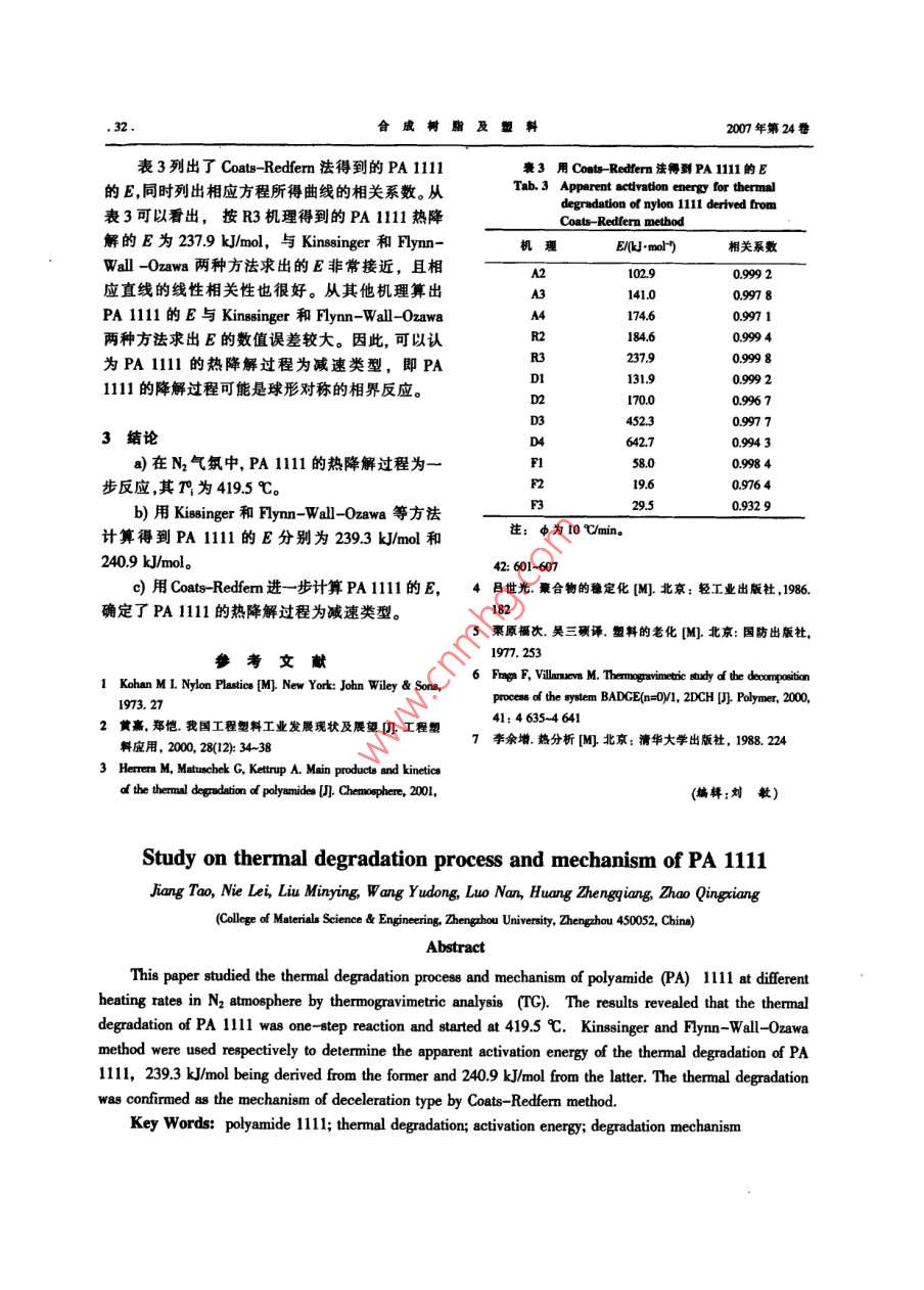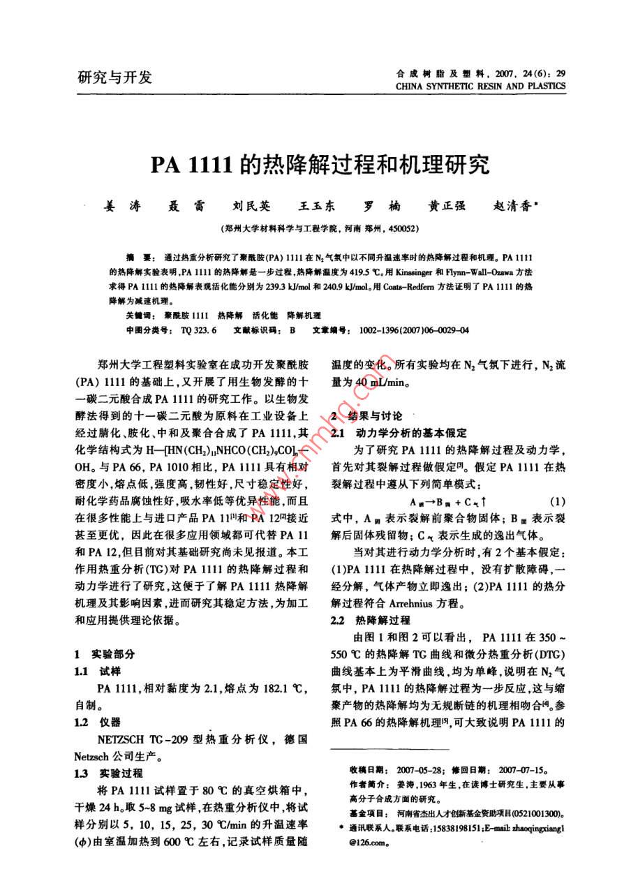 PA 1111的熱降解過程和機理研究