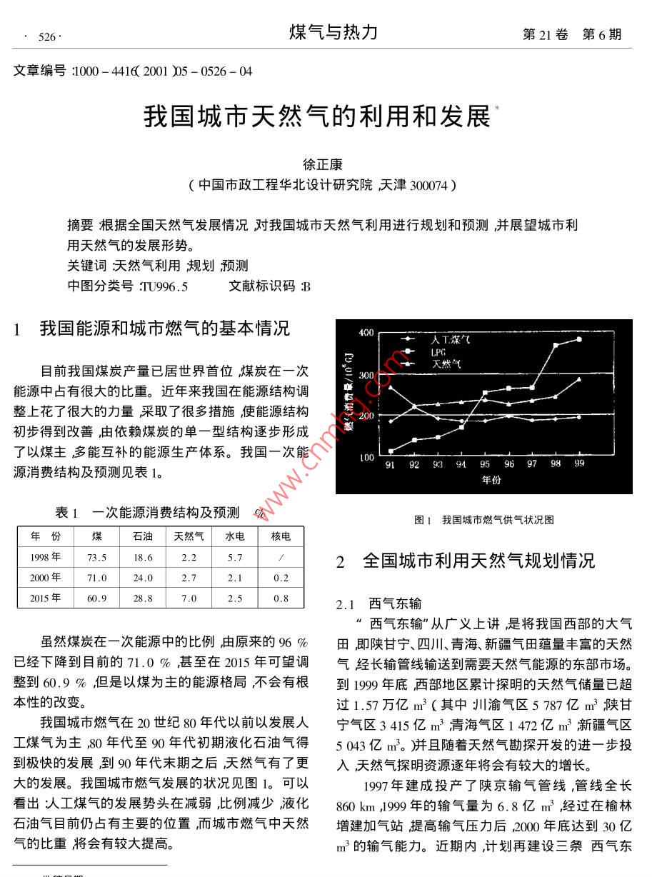 我國城市天然氣的利用和發(fā)展