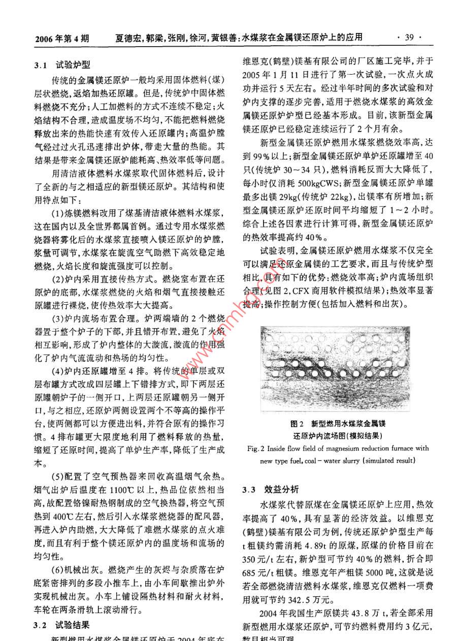 水煤漿在金屬鎂還原爐上的應(yīng)用