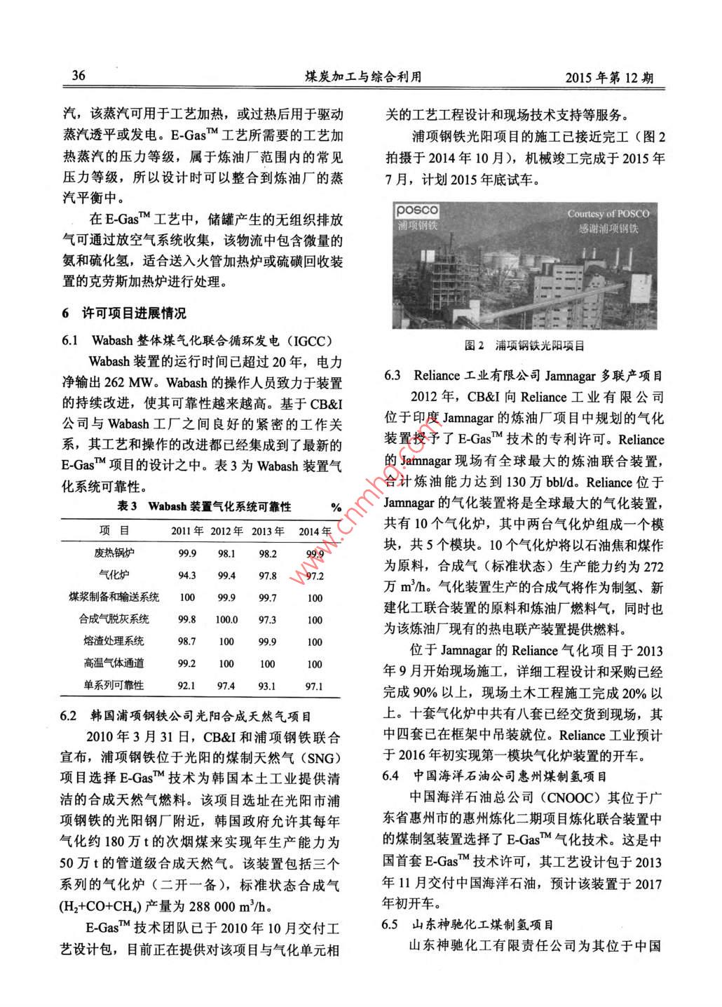 E-GasTM氣化技術及許可項目進展