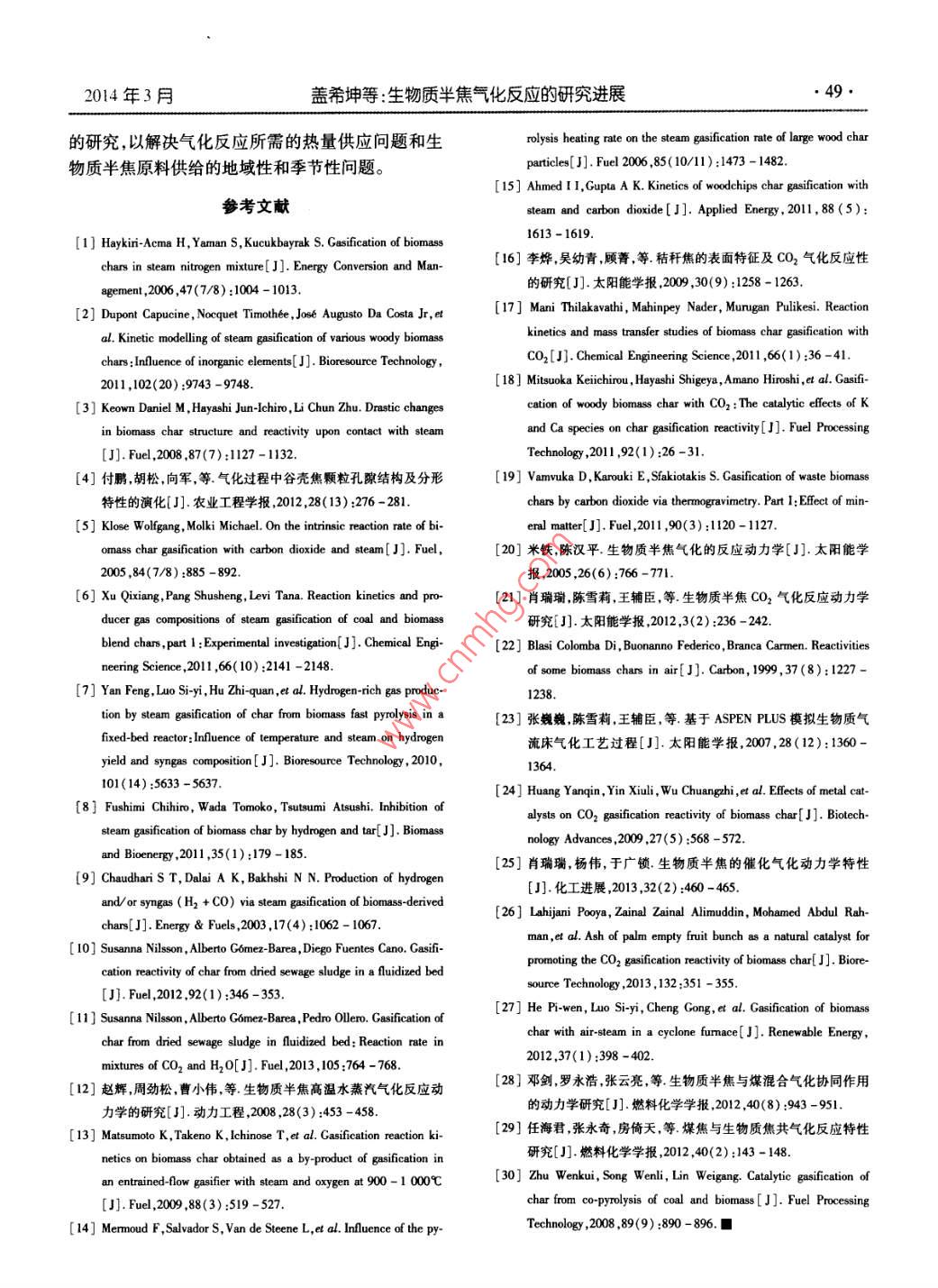 生物質(zhì)半焦氣化反應(yīng)的研究進展