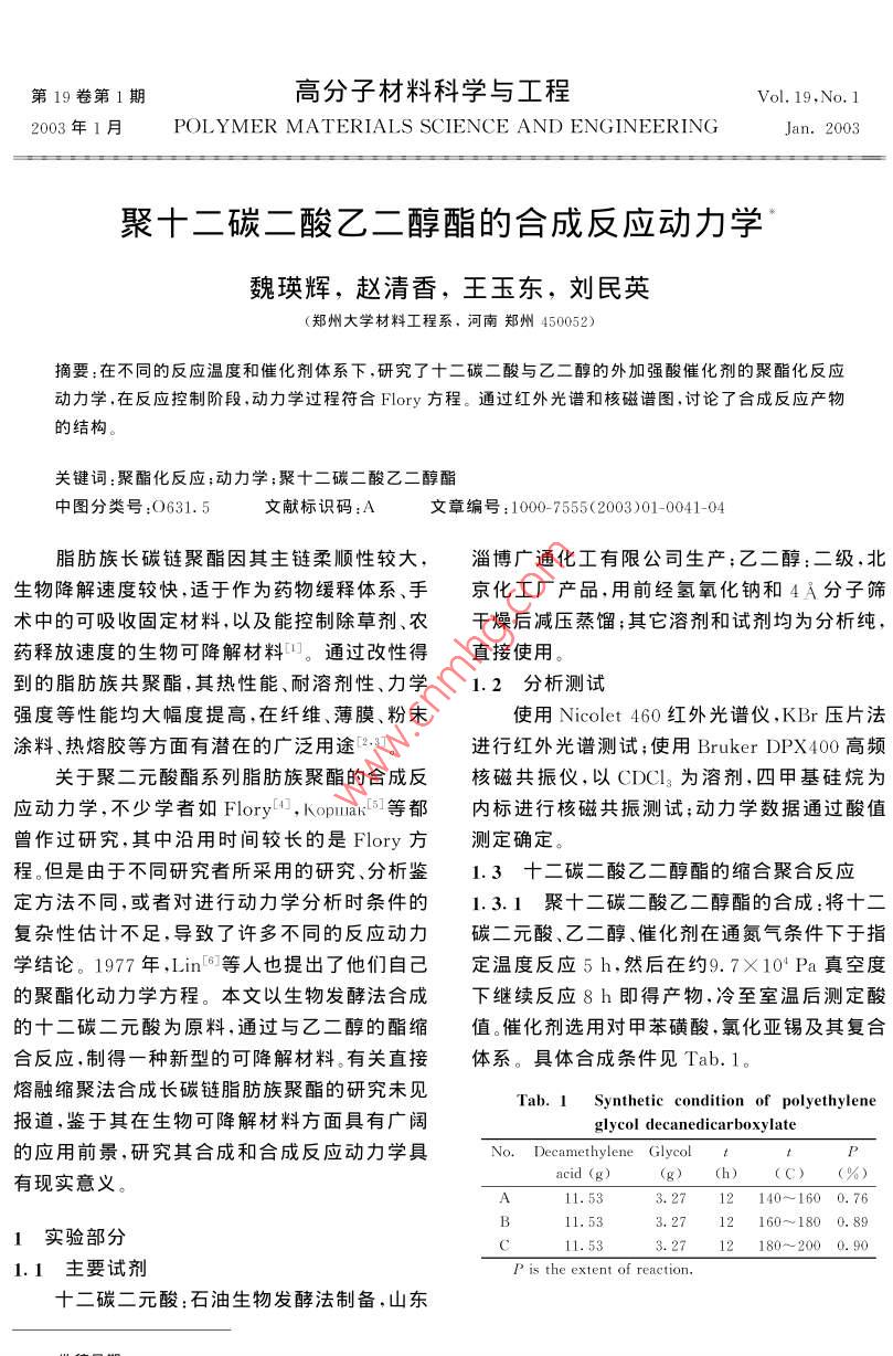 聚十二碳二酸乙二醇酯的合成反應動力學