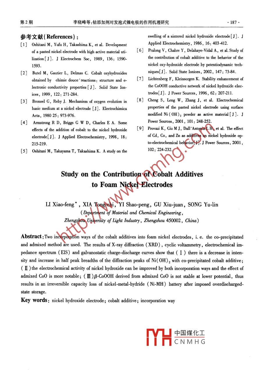 鈷添加劑對(duì)發(fā)泡式鎳電極的作用機(jī)理研究