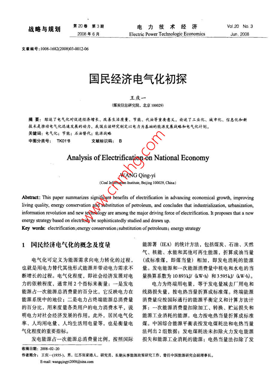 國(guó)民經(jīng)濟(jì)電氣化初探