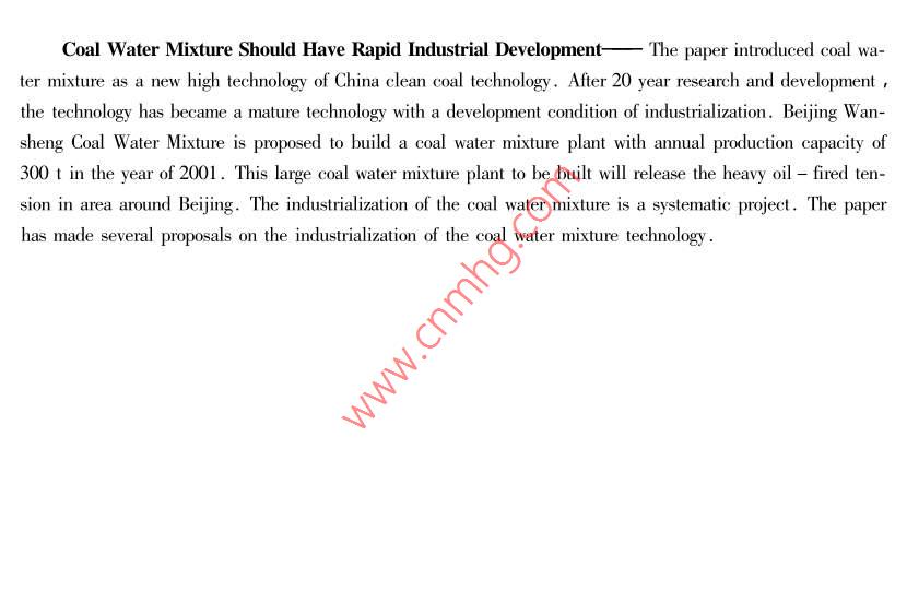 水煤漿技術(shù)應(yīng)加快產(chǎn)業(yè)化發(fā)展