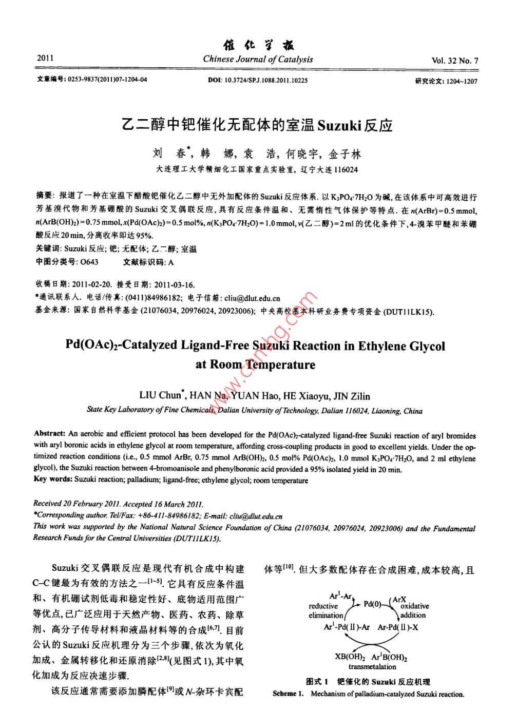 乙二醇中鈀催化無配體的室溫Suzuki反應(yīng)