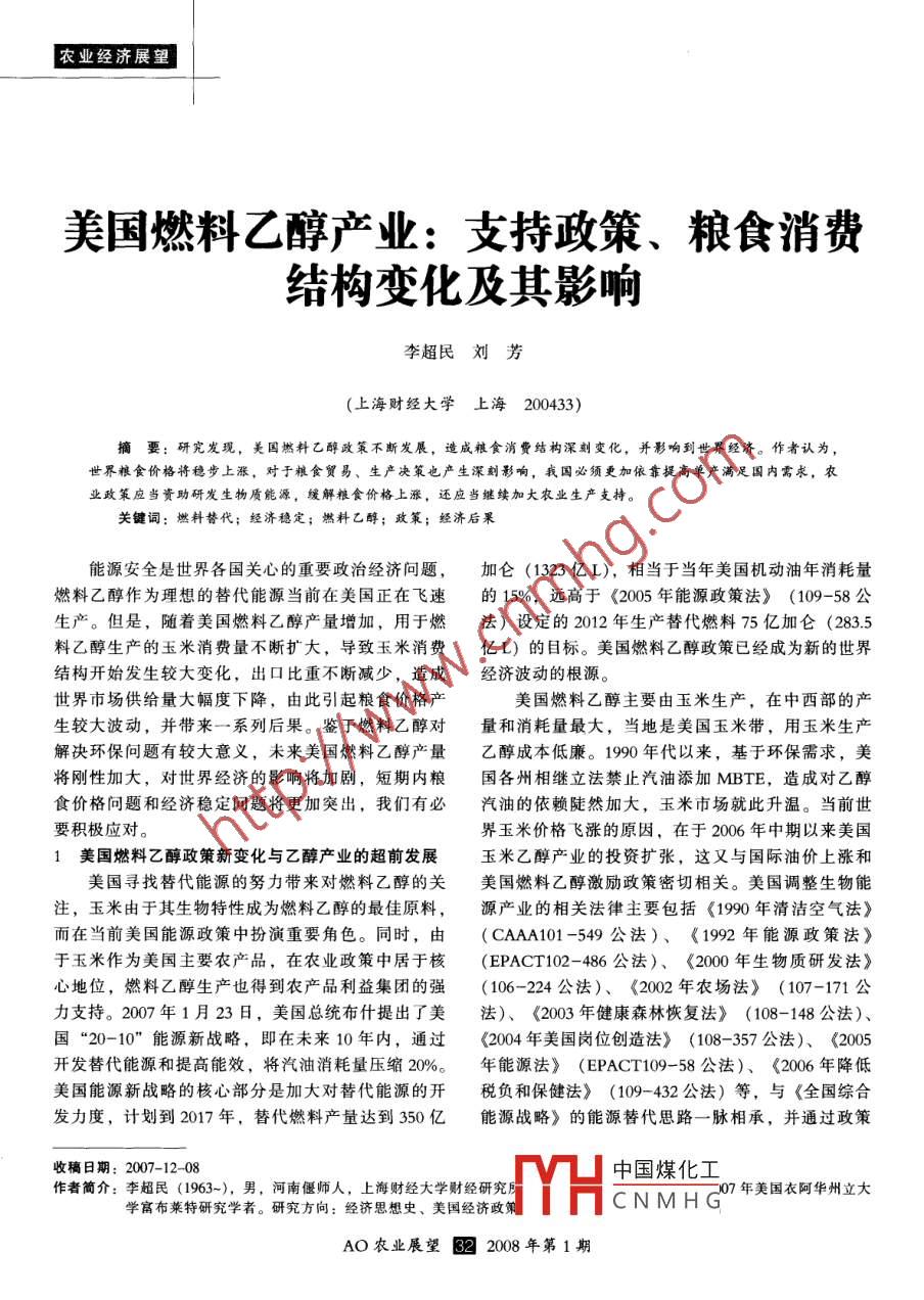 美國燃料乙醇產(chǎn)業(yè):支持政策、糧食消費(fèi)結(jié)構(gòu)變化及其影響 美國燃料乙醇產(chǎn)業(yè):支持政策、糧食消費(fèi)結(jié)構(gòu)變化及其影響