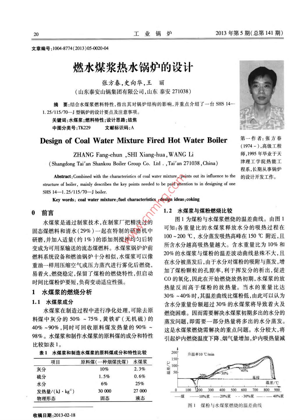 燃水煤漿熱水鍋爐的設(shè)計(jì)