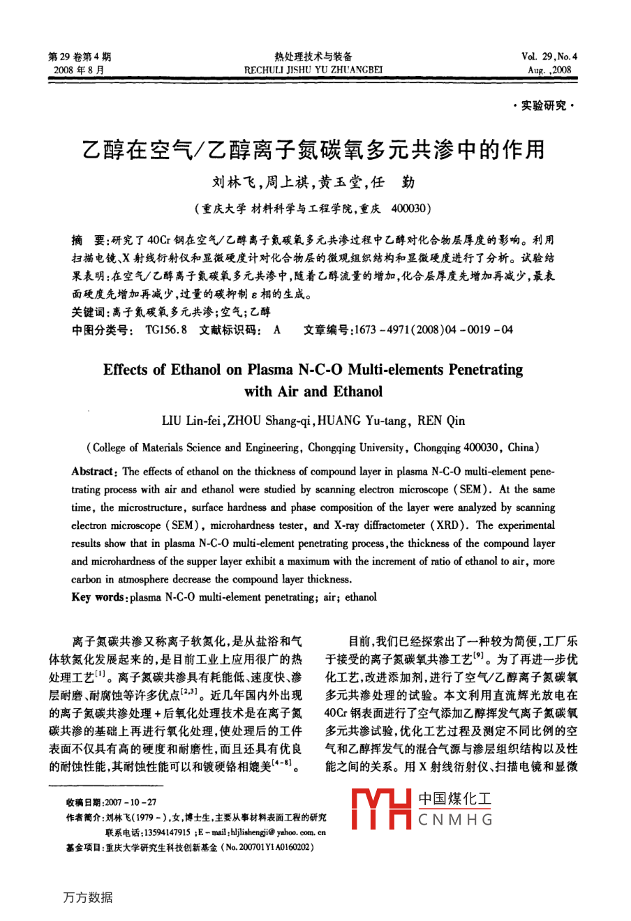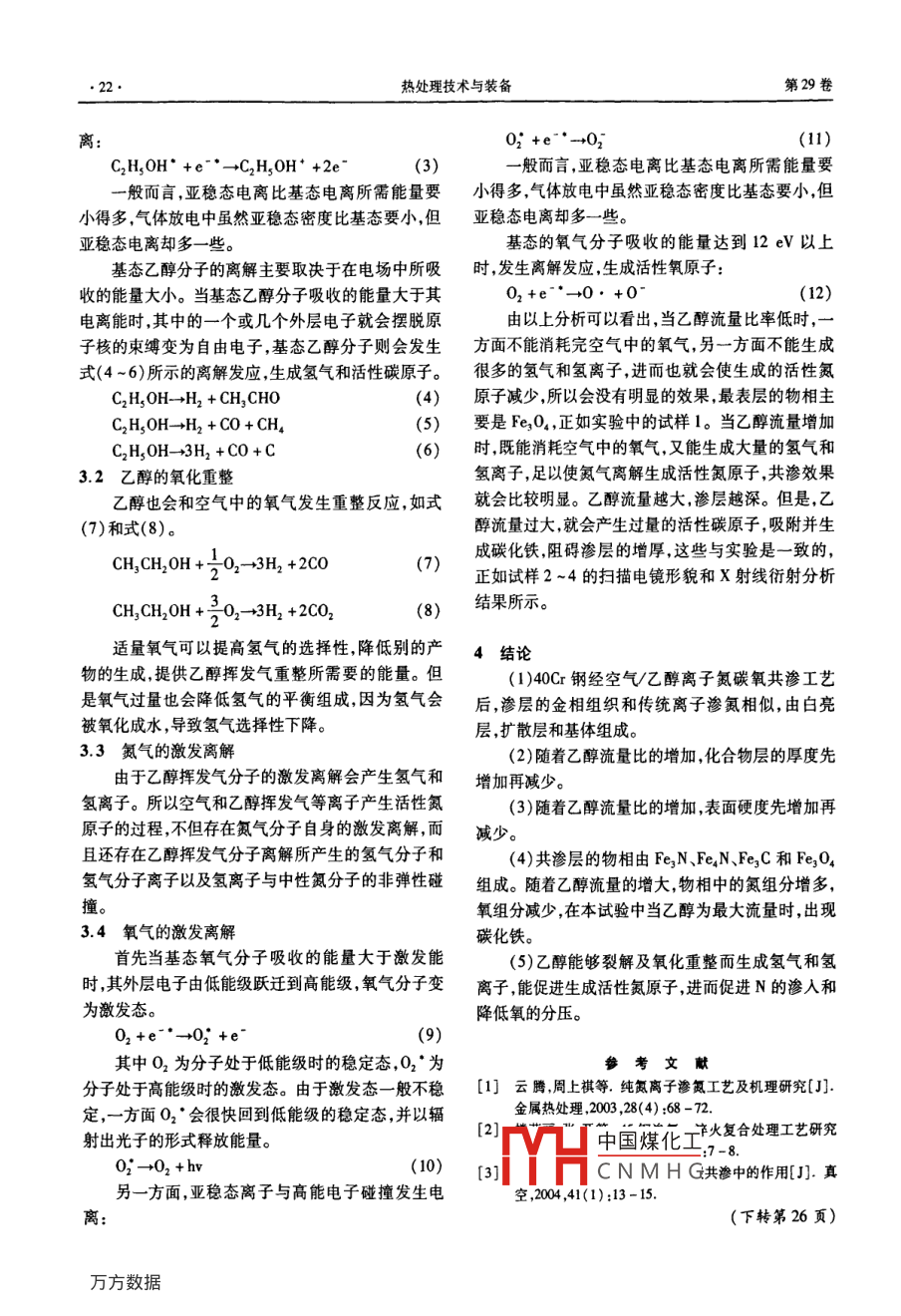 乙醇在空氣/乙醇離子氮碳氧多元共滲中的作用
