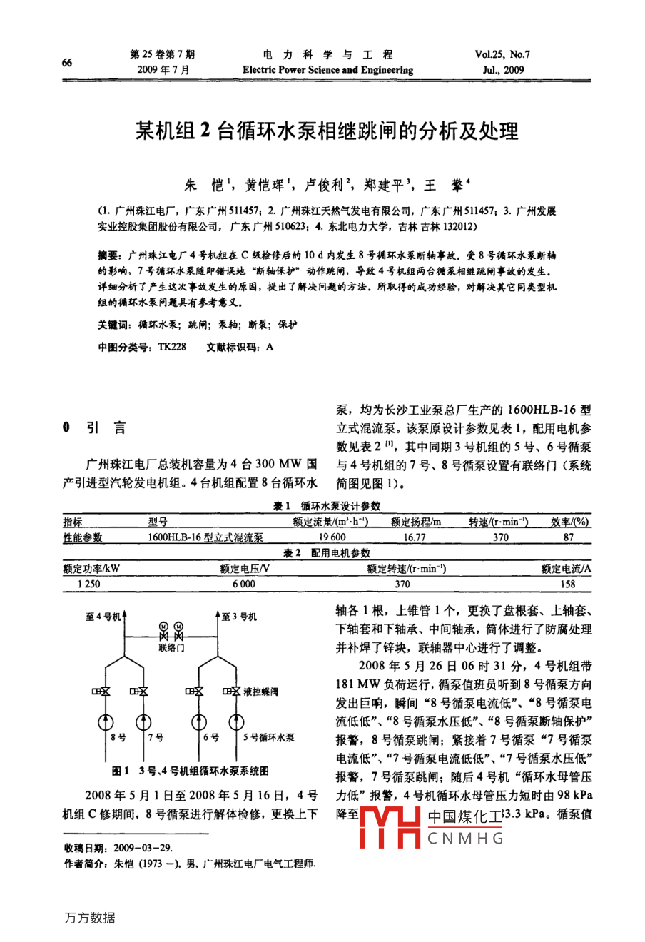 某機(jī)組2臺(tái)循環(huán)水泵相繼跳閘的分析及處理