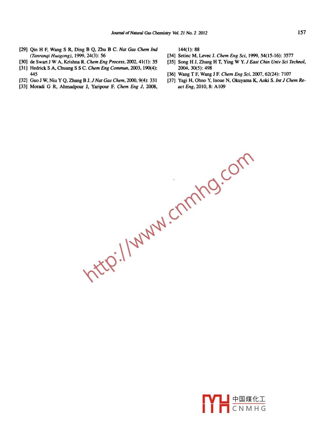- 期刊名字:天然氣化學(xué)(英文版)