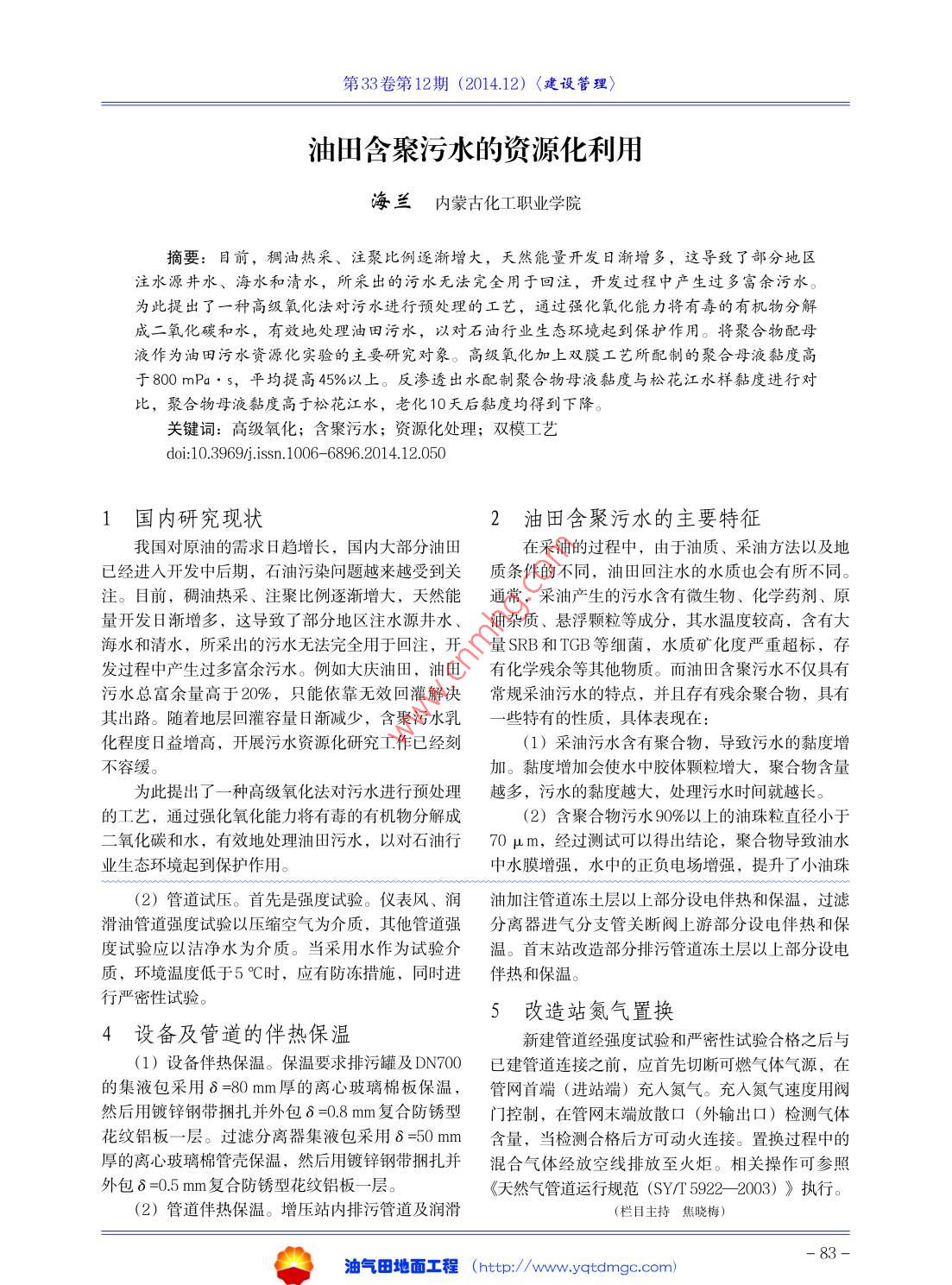 - 期刊名字:油氣田地面工程