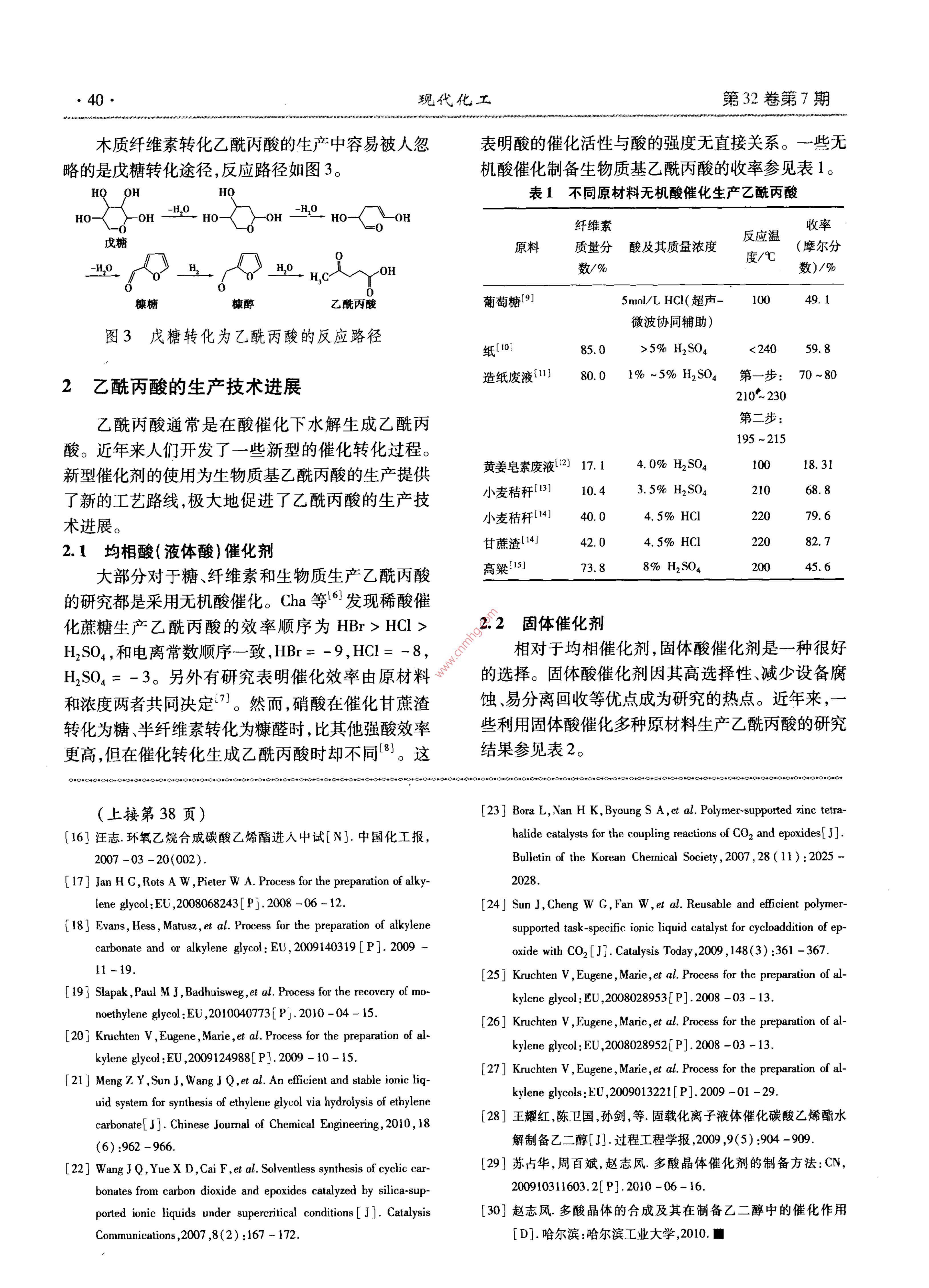 duly 2012現(xiàn)代化工第32卷第7期Modern Chemical ludustry202年7月碳酸乙烯酯水解合成乙二醇的研究進(jìn)展沈文彬,劉定華,劉曉勤(南京工業(yè)大學(xué)材料化學(xué)國(guó)家重點(diǎn)實(shí)驗(yàn)室,江蘇南京210009)摘要:介紹了乙二醇現(xiàn)有的生產(chǎn)工藝及其現(xiàn)狀,分析了碳酸乙烯酯法制乙二醇新工藝的優(yōu)勢(shì)及其工業(yè)化應(yīng)用前景,從均相和非均相兩方面對(duì)新工藝水解過程中所使用的催化體系分別做出了相應(yīng)的闡述,并指出了各自的研究方向和發(fā)展趨勢(shì),最后提出了采用新型非均相催化劑解決現(xiàn)有難題以應(yīng)用于水解過程的設(shè)想關(guān)鍵詞:碳酸乙烯酯;水解;乙二醇;催化劑中圖分類號(hào):TQ223.1文獻(xiàn)標(biāo)識(shí)碼:A文章編號(hào):0253-4320(2012)07-0034-05Advances in synthesis of ethylene glycol via ethylene carbonateSHeN Wen-bin, LIU Ding-hua, lIu Xiao-ginState Key Laboratory of Material-Oriented Chemical Engineering, Nanjing University of TechnologyNanjing 210009, China)Abstract: The traditional direct hydration process to produce ethylene glycol consumes a large amount of water andenergy. To overcome these shortcomings, a new technology catalytically synthesizing ethylene glycol from ethylercarbonate has been developed to save production cost, which is high promising for industrial application. The catalyststems applied in the hydrolysis process of ethylene carbonate are summarized from the aspects of homogeneous andheterogeneous catalysts, respectively. The corresponding research directions and development trends are proposed as wellThe new heterogeneous catalysts are proposed to solve the problems existing in the process of hydrolysis in the endKey words: ethylene carbonate; hydrolysis; ethylene glycol; catalyst乙二醇(EG)是最簡(jiǎn)單的脂肪族二元醇,作為生產(chǎn)成本大大降低,實(shí)現(xiàn)了綠色可持續(xù)發(fā)展。此外種重要的基礎(chǔ)有機(jī)化工原料,主要用于生產(chǎn)聚酯纖中間產(chǎn)品碳酸乙烯酯毒性小,是一種優(yōu)良的有機(jī)溶維聚酯塑料、不飽和聚酯樹脂聚酯漆、配制汽車及劑及有機(jī)合成中間體,可成功固定二氧化碳用于工航空工業(yè)和儀表工業(yè)中冷卻補(bǔ)充的重要抗凍劑,以業(yè)生產(chǎn),對(duì)減少溫室效應(yīng)有著積極的作用,因此,大及溶劑、潤(rùn)滑劑、增塑劑和炸藥等力開發(fā)該工藝極具工業(yè)應(yīng)用價(jià)值。目前,國(guó)內(nèi)外大型乙二醇生產(chǎn)工藝主要以Shell. halcon-SD、UCC3家公司為代表,均采用唯1均相催化工藝的乙烯經(jīng)環(huán)氧乙烷(EO)直接水合生成乙二醇,該碳酸乙烯酯法合成乙二醇包括酯化和水解2步工藝中H2O和EO摩爾比高達(dá)20~28,產(chǎn)品總收率藝,早期的酯化水解過程選用1種或2種共用催僅為88%,生產(chǎn)裝置設(shè)置了多個(gè)蒸發(fā)器,消耗大量化劑,隨著研究的不斷細(xì)化,酯化工藝日漸成熟,催的能量用于脫水,從而造成生產(chǎn)工藝流程長(zhǎng)、設(shè)備化劑體系也相對(duì)完善,先后開發(fā)出的均相型酯化催多能耗高,直接影響了乙二醇的生產(chǎn)成本。為化劑有季銨鹽、有機(jī)鏻鎊鹽、鎳鏻配合物、鏻鋅加合了提高經(jīng)濟(jì)效益、降低物耗和能耗,開發(fā)新工藝尤為物、四齒席夫堿鋁配合物、四鹵化鋅咪唑類離子液重要,而碳酸乙烯酯(EC)法制乙二醇被認(rèn)為是當(dāng)前體、羥基功能化離子液體、雙功能金屬 Salen配合最具有發(fā)展前景的工業(yè)化生產(chǎn)工藝之一。該工藝主物羥基苯磺酸鋅鹽等12=3。要由以下2步組成:①環(huán)氧乙烷和二氧化碳在酯化水解過程相對(duì)簡(jiǎn)單,催化劑的開發(fā)不如酯化催催化劑存在的條件下加壓合成碳酸乙烯酯;②碳酸化劑熱門,常見的均相型水解催化劑主要為堿金屬乙烯酯在水解催化劑存在的條件下生成乙二醇。碳酸鹽、堿金屬碳酸氫鹽、堿金屬氫氧化物、季僯鹽、新工藝最大的優(yōu)勢(shì)在于水比低、收率高、選擇性季銨鹽、磷酸鹽、離子液體等6。此外,部分研究以好,工藝過程綠色環(huán)保,可直接節(jié)約能耗20%以上,醇解代替水解,開辟了碳酸乙烯酯法制乙二醇一種收稿日期:202-02-22基金項(xiàng)目:中國(guó)石油化工集團(tuán)公司基金資助項(xiàng)目(4080);江蘇省精細(xì)石油化工重點(diǎn)實(shí)驗(yàn)室開放課題(KF91作者筒介:沈文彬(1986-),男,碩士生,主要研究方向?yàn)楣I(yè)催化過程,025-83587191,when831@163.com;劉曉勤(1958-),女,博士,教授,主要研究方向?yàn)槲椒蛛x過程、新型吸附劑的研究、工業(yè)催化過程化工生產(chǎn)廢氣及廢水治理技術(shù)、合成氨生產(chǎn)氣體凈化技術(shù)等,通訊聯(lián)系人,025-83587191,iuxq@njut.edu.cn201年7月沈文杶等:碳酸乙烯酯水解合成乙二醇的研究進(jìn)展35wm線mmwm的小m得個(gè)ymnw全新的合成路徑n(EO)=2.15,n(H2O):n(EO)=1.77的條件下,菱化學(xué)公司對(duì)碳酸乙烯酯工藝的研究一直處經(jīng)兩段泡罩塔及一段管式強(qiáng)化酯化反應(yīng)器后,出口于領(lǐng)先地位。2000年,采用三丁基甲基碘化鏻作酯處EO質(zhì)量濃度低于10mg/L;后將產(chǎn)物通入隔板式化和水解反應(yīng)共用催化劑,水作EO吸收液,在溫度水解反應(yīng)器中,于溫度150℃,壓力0.18MPa下水150℃,壓力2.0MPa,n(CO2):n(EO)=2.2,解,檢測(cè)得到EC轉(zhuǎn)化率為100%,EG選擇性超過n(H2O):n(FO)=2.0,催化劑質(zhì)量分?jǐn)?shù)為7.3%99%,生成的EG經(jīng)脫水塔和分離