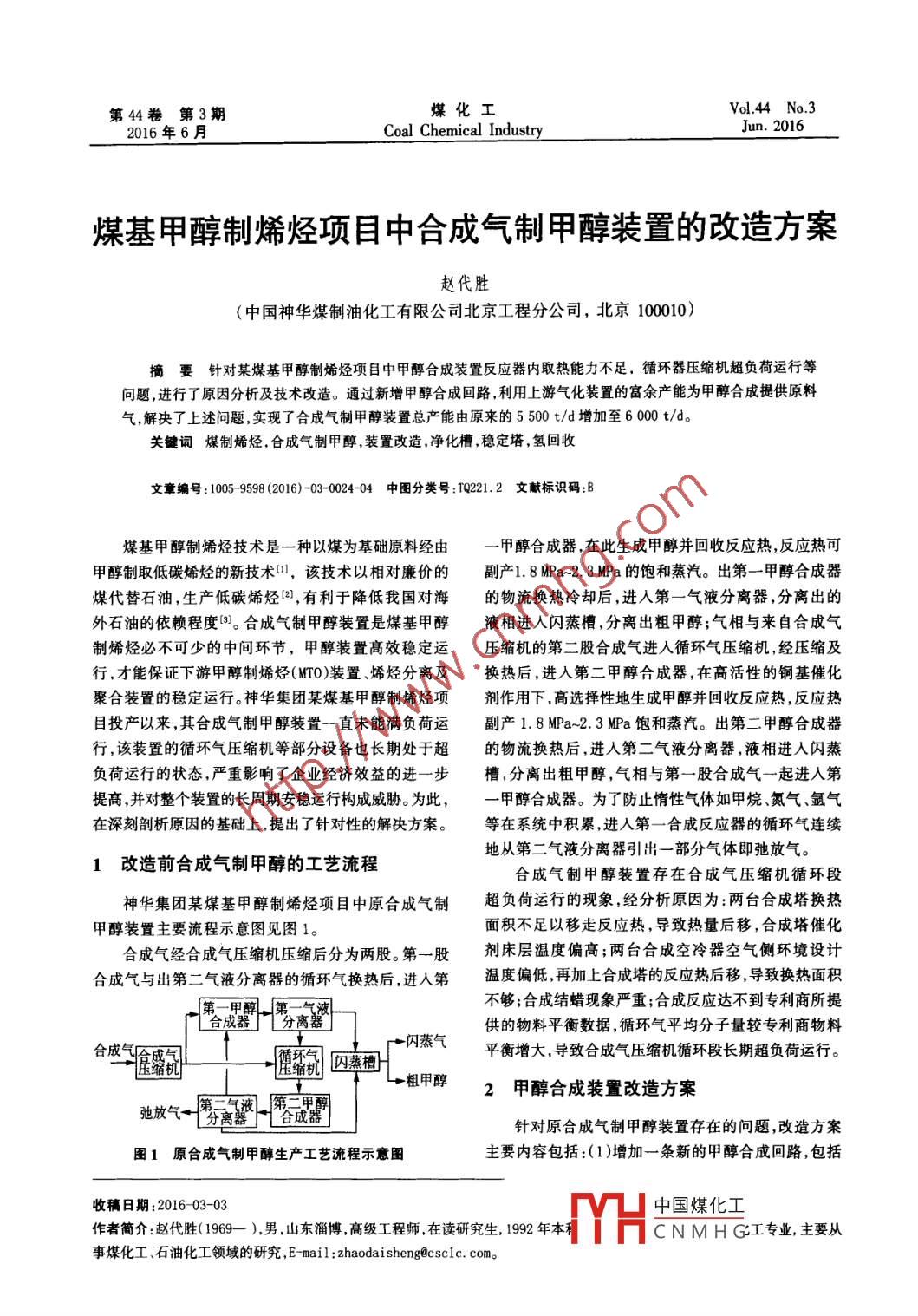 煤基甲醇制烯烴項(xiàng)目中合成氣制甲醇裝置的改造方案