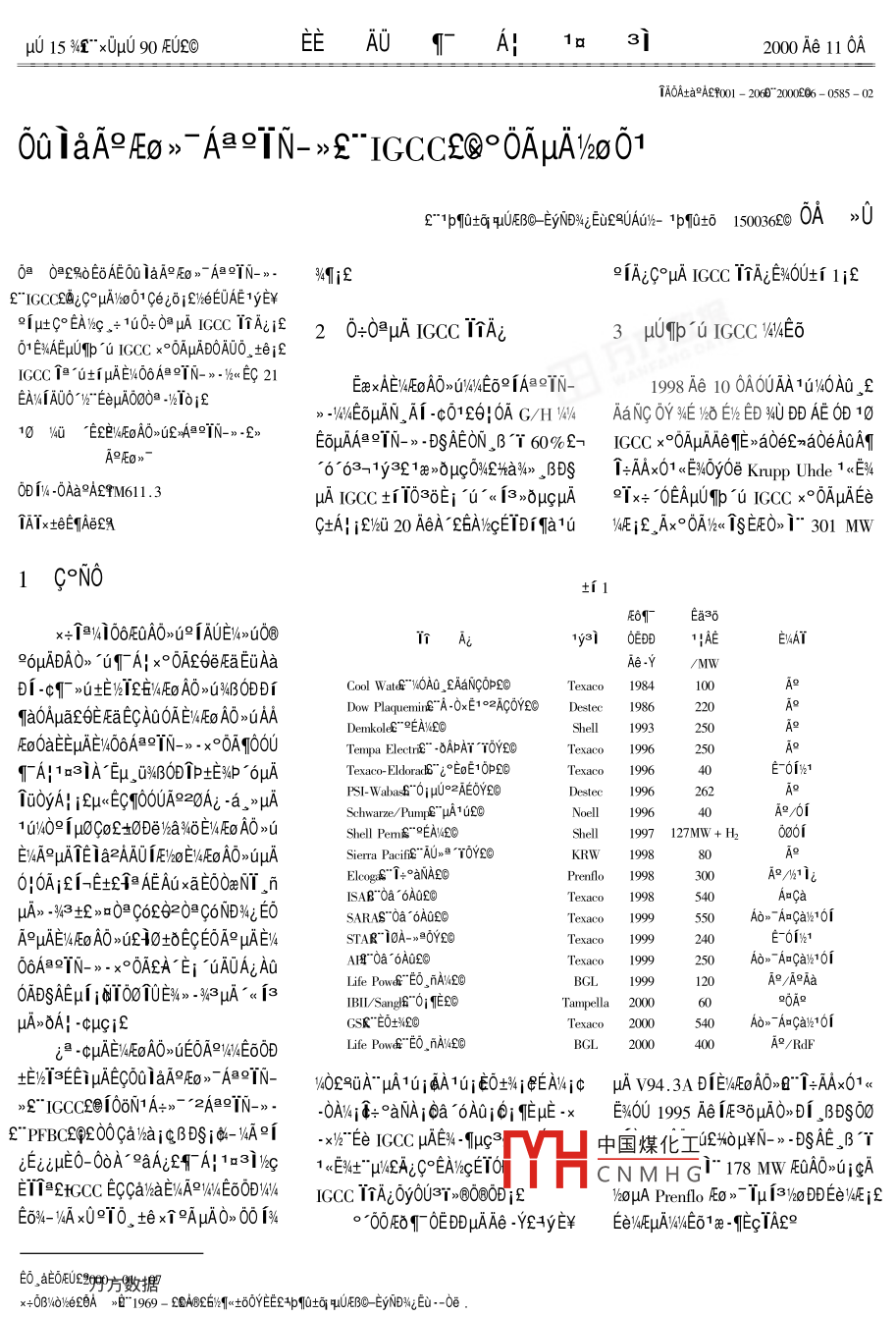 μU 15 %46" x0μU 90 FEULOA0qTA!1o2000Ae 110ATA0AtaRAe900 - 20~ 2000 - 0585 -0200 iaA9Eo>- A≥9TN- >&" IGCCE@OAμA/k001f"1bq qUEBG- _EyNDB4:EU29UAUl- 190t0 150036200A >00@ 0CEAEO0IaAREo》- A9TN-》. 34[jf21Aεζ°μA ICCC IiAεE40U+i 1iffICCEQiC°μANo01C∈iδif/eE0AE1yE$2fμC° EAhc。100+ 0 μA IcCC 1iAi2 0=0uA IGCC 1TAi3 μU1p 0 IGCC 4E01 E%AEμU1) u ICCC x°OAμAD0A00, tejfIGCC但utfμAEw06A°TN-1%U144E69TA≥9IN-1998 Ae 10 0A00AA1040A0 fEAN1AO~W" EexA000 -%hTojf .》-V4E6oμAN AI -c012θ|0A G/H/44 AaNC 0Y %4E /& E%2 EDW0U DD AE 60 1010 40 -E'%6EoAO>+>*A91N->-E》EoμAA≌9TN->-DSAEON ,B T 60%£- ICCC x°0AμAAe E >a0eEna0eAuAqA9Eo>663-1y32 1e》δμg0%$%a%》. ,BDS個(gè):AAx01 《0μqμA2x+ °0EAμUTlp u ICCC x°OAμAEeTATxtEETAeEAC+A! i&)}0 20 AeA 6A/gETDiY31uVEif Ax°OAWuTξEO>1" 301 MW1 C°NOti 1Ea36x+↑v106E0AO0>[9 1AE/xG@T Ai1yalOEDD1AEENAT26μADAO》uT A! x°OAzθeFaEuAaAe-Y/MWDi -C「>UHE%TEE%4FEo AO>U%4BODDiCool Watlfr wWOAO EAaNCOP2O1984100A9Dow Plaquemin' A-0xE102ACOYEODestec 1986220TaOAuaE6EaECA0OAEI%AEo AO>uAADemkole&"eEAN2OShell1993EoOaEEμAE[40δA291N-> -x°0Aq000Tempa Elecn&" -8APAT τ0YEOTexaco 199650Texaco- Eldoral6C i*EoE1OPOTexaco199640E-0T%21 .TA|1o3iA- E印μ_ [0%BODIPtE%P °6μA1u0yA! iLu<∈C700UA920Ai-a, >》μAPSI-Wabaf"0μ02AEOVE◎Destee62Schwarze/Pump6C" μA10S@NoellAe/0i1u4091μ0CoftODeyaOEN4FEo AO吒Shell Pem&"°EAwaO1997 127MW + H20001EVAμATEla2AAOFE%oEV4FoAO>uμASierra Pacif AU》@ T0Y2◎KRV1998800|0Aj&i-Efs AEAuxaEOOeNT nElcogs&"" 1+°aNA@Prenlo00A/1iISAB"~Oa 6A020Texaco 1998540AuGaμA》-V/3 +E>0≌C6Rθ20≌G6ND%εEOSARAS"a ' 6A0EG1999Ao=~AGa%10lAμAEI/4Eo AO>u2i0+δECEOA9μAE)4STAR~10A->20Y20Texaco 1999240E-0T%610δA≌9TN-》-x°OAEA- Ei uAUAjAuAI8~0a 6A0EOAo=~AGa%10fLife Pow6"EO ,nANEO20A膽/Aa0ADgAEμ1 j610010E% -W3μA"δA! -cμqifGSK"EO+WcO2000AOm~ AaCaln10fLife Powof" *EO IAN2OBGLA/RdFE6°3EEiμAEcouiaA9FEo> A9TN-4OQ90A" μA1ujA1j E0土%i eEAI4j中μA V94.3A DE)%AEoAO>8"個(gè)+AAx01<>f^ CCCEO06N1-+>-2A91N-》..0AVqj2+ °aNAjea °6A0jOjEuE -x E%OU 1995 Ae iE38gμAO>Di_ βDSδ00E" PFBCQE0OCa/ajgBDSi&-%A°i-xh"Ee ICCC μAE4-91uc3中國(guó)煤化工0H0μN(yùn)--DSAE. ,B Tii;E0-0A aAi2FA1]lG 1∈EWI°μWCAξ°EANgETO:MYHCNMHG178MWEDAOUiGAETISEfGCC ECaWaE%A9VNAE6ODV/)4IGCC ITAiOyOU3Y>@O@ODjE"VoμA Prenflo FEo》μj36aDEeVAEiEE6%- VAx020. te xT °AμAO》00 i%。00F0「0EDμAAe -YE4yE¥EeVAEuμAv4E61x qEcTAL2E_0E02992方數(shù)據(jù)x=0B40Y620A >帕 1969 - 2OAB(6%Yxu+%[qxE -NOA113∈DSAE"LHVEO51.7%μA3oIxE -NAtx04μu20>21/2/001x30°0 -NOA 1 100 AA0/EUjfICCC個(gè)a uti μAEI4δ6A@9TN-kl#^"x°>uEYA;2O4 V:aEo0T》-/kEC 21 EAv41 A00 V" EeμA00E0o>-9[A9Eo"|Ai42.6%iOEo -0Ae2[A9uAx%+。8.6%%-1y 20 TaAeμA淚.c0! 0AE-2ij4TA1x29μcA|Eu2U9 ix°OAE/h9a 48 .8%ICCC VA4E60yOUE00e ieEE6 iqxEEEE"LHV2O-NOAO=ONODAE≌0"°6μA14μ120U%° sLU1eY VICTOR de Biasi. Sleadly gins in IcCCA~Azii 2545 q02874. 9 MJ/s0i Cool Water μcO%E+2fGCC x°OAeconomics reported at gasification meetingiE(AE-~0AOUA9μAx)4+ f0μAIqxE -N0A個(gè)e 2400 AA0/kWjf£0JEY Gas Turbine World. 1999E-29"15698 - 26.0.9 MJ/sAi°&fηxE -NOANuμfμ/ 1000 AA£U2EY IRWIN Stambler. Progress in ICCC andAu302.4 MW1y 50% jf2cC0O》個(gè)x0 ,900 1x30EOJ&Y Gas Turbine World. 199269 1E國(guó)9EuAO>u178.1 MW°咱IGCC x°0AOOμgA! E2uE3i iq16- 23.DSAE~ LHV2O54.7%teDuAx00uA}0yμAl4OGiif£U3EY DAVID White. ICCCEPoised for growth .1|AET09A .oiev M_ndem Power Sytens. 1998-1801 1a 21 EANi2fCCd中國(guó)煤化工_34.A9Eoμ°17.8 MW2E0AAA1uA00- 2q" DOE£d:YHC N M H Ghite. Bugenum-a step towardsA91N->_7.6 MW0>u1E%xoμA iDAOTμi吧ATS£AφBcommercialisation of IGCEUJEY Modernr"0AEet。1.5 MWDSμAA≌9TN-》- Ee NAEiCATS μA0!Power Systems£-1998E18 6E653 - 55.W>Ea361|AEA21N-29δ% 452.6 MW0A261 ICCC 2>0TDLbμDuμ1uq%4OμA.' tal/-£⑥CtA! jf00 ATS Tax°μA IGCC μg0%4