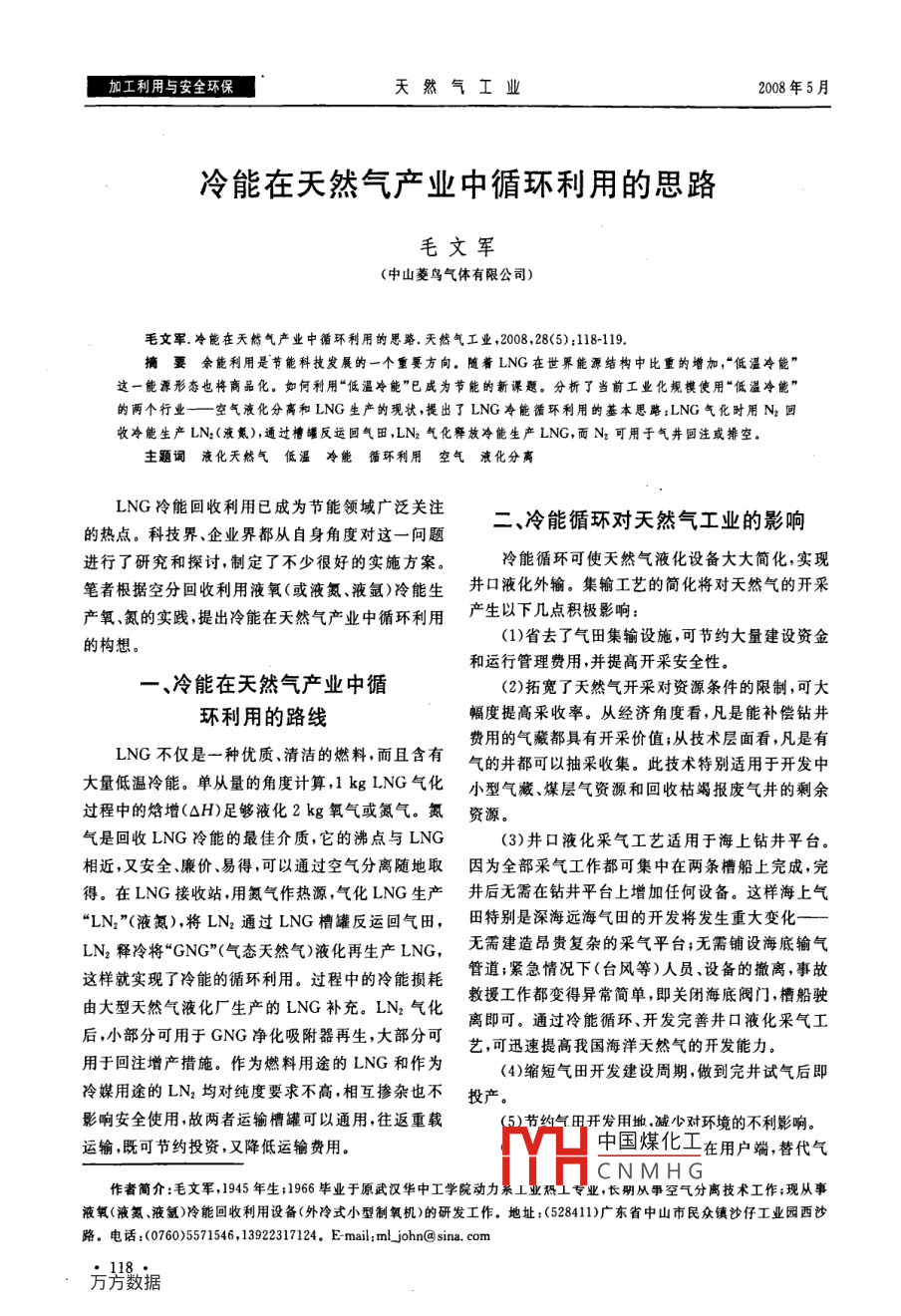 冷能在天然氣產(chǎn)業(yè)中循環(huán)利用的思路