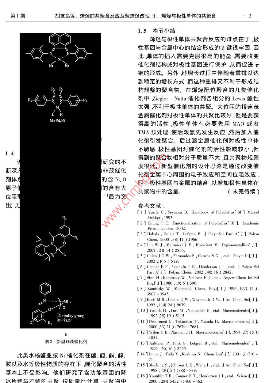 烯烴的共聚合反應(yīng)及聚烯烴改性:Ⅰ.烯烴與極性單體的共聚合