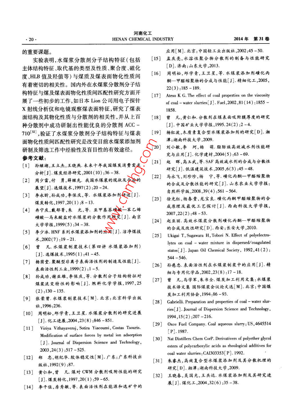 水煤漿分散劑及其發(fā)展現(xiàn)狀